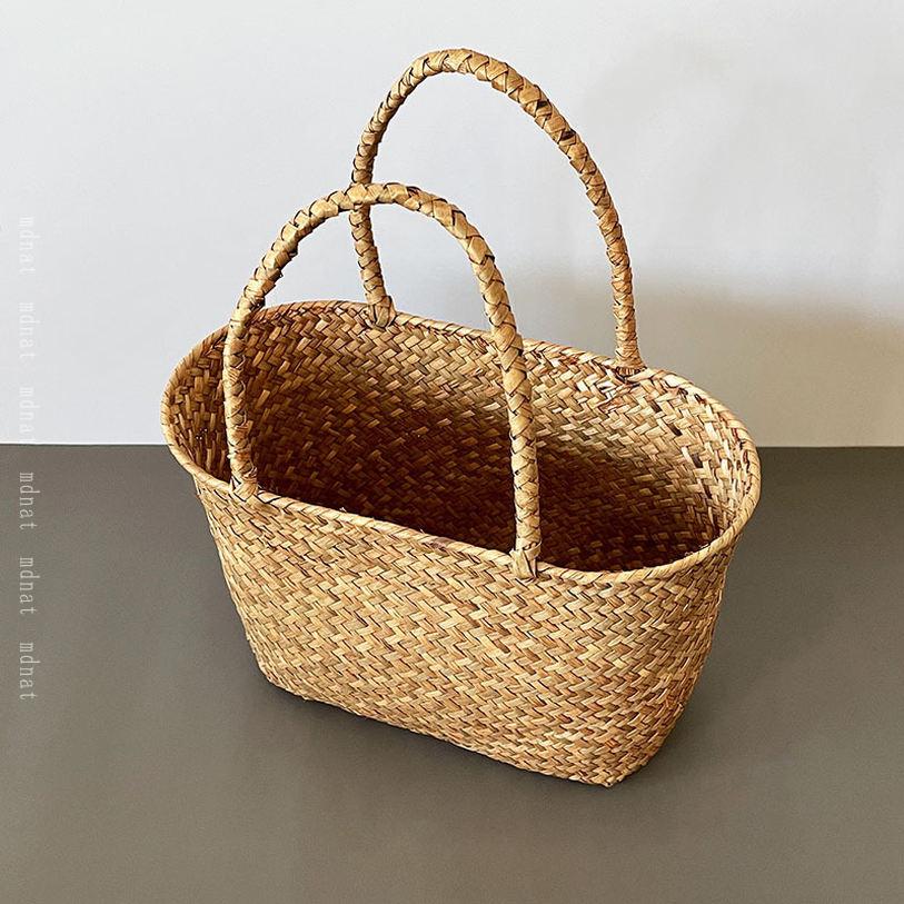 小物入れ ラタン 籐 バスケット バッグ かご 籠バッグ かごバッグ 花編み 市場かご 田園風 ピクニックバッグ 籐かごバッグ 買い物かご 整理バスケット 収納