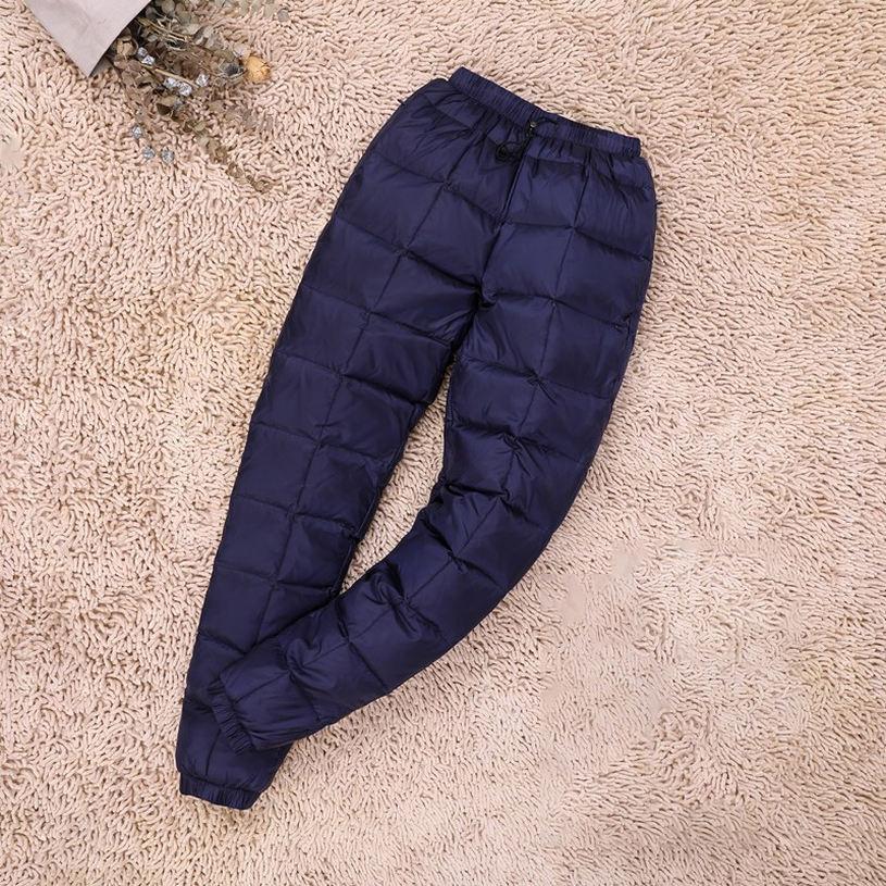中にはダウンとフェザーを使用しているので厚手であったかい、軽い着心地、機能的で保温性に優れたダウンパンツになっています。