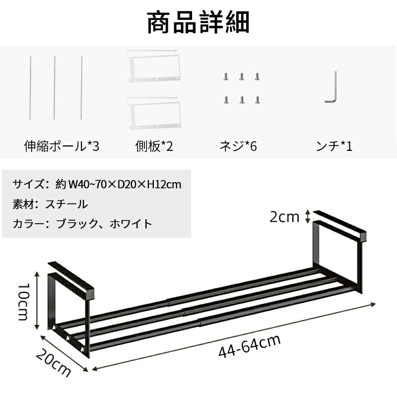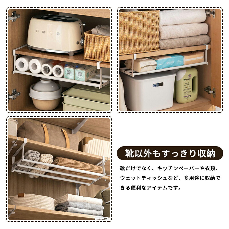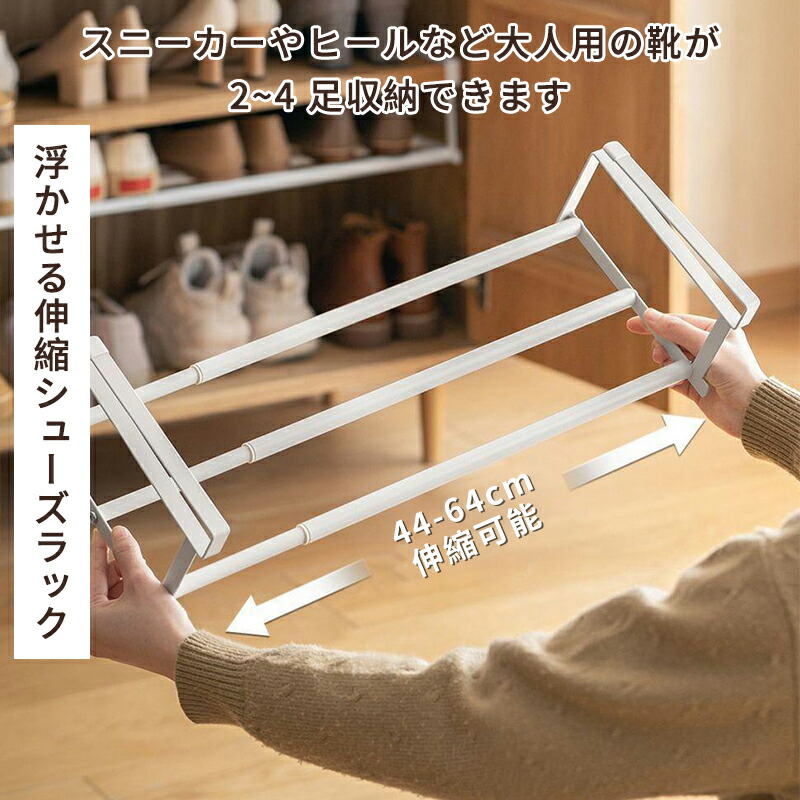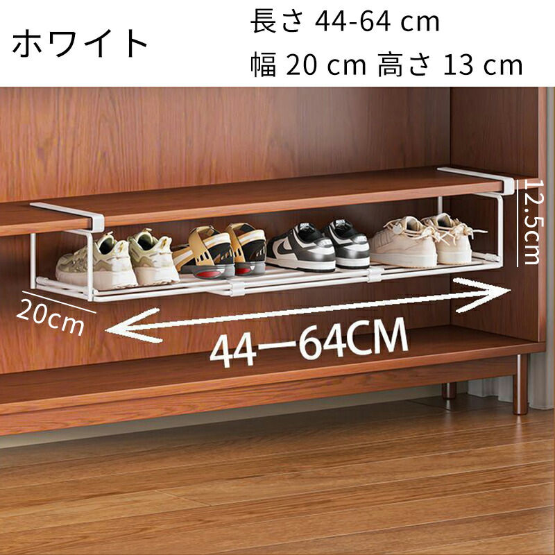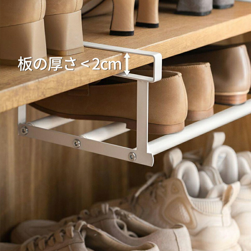 シューズラック 伸縮式靴掛け 吊り下げ ホワイト ブラック