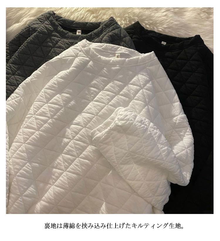 プルオーバートップス キルティング 長 トップス スウェット トレーナー 通販 ホワイト ブラック グレー S M L XL 2XL 3XL