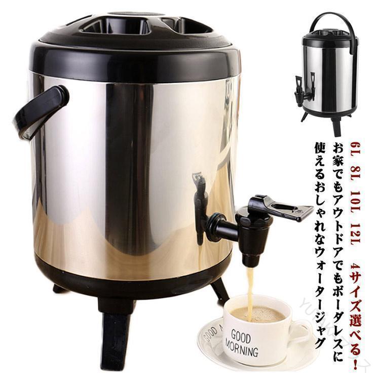 6L 8L 10L 12L 4サイズ選べる 食品級ステンレス製 保温保冷可能 大容量広口設計 耐熱温度-30~150度 ウォータータンク ウォータージャグ