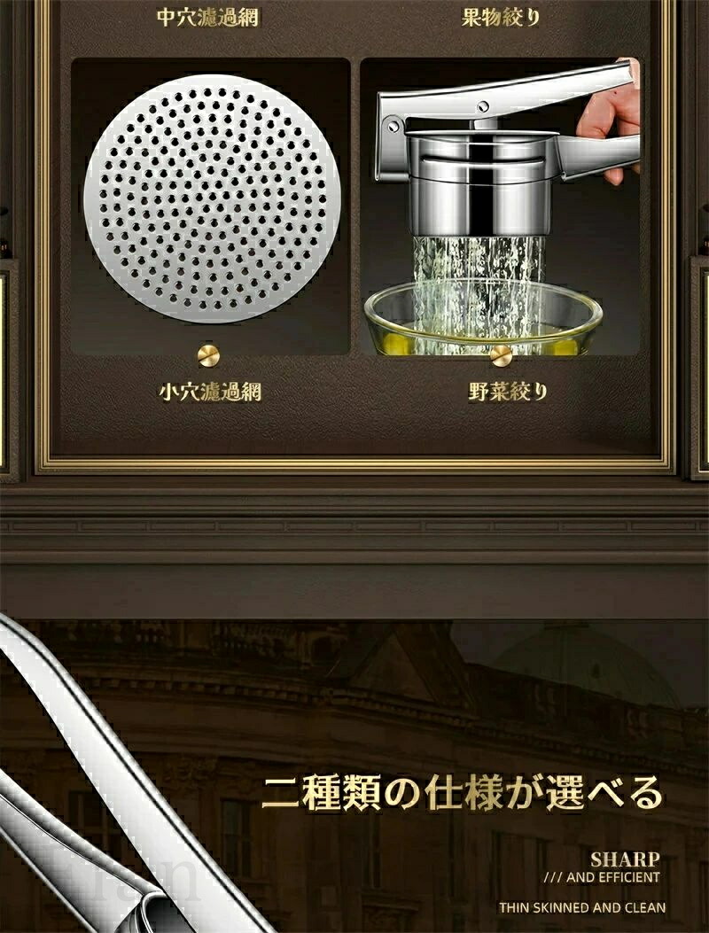 フルーツ絞り器 レモン絞り機 304ス キッチン用品 食器 調理器具 新登場! 底穴式(3枚の濾過網付き) 全身穴式