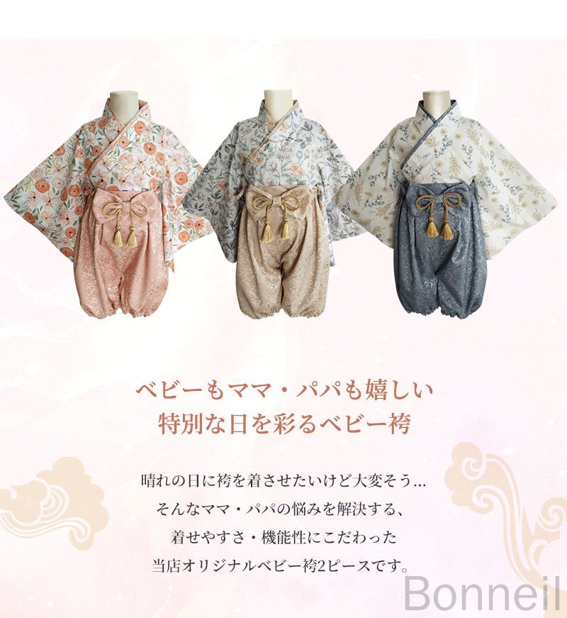 ベビー袴 2ピース セパレート 着物 ベビー ベビー服 ファッション 上下セット セットアップ 早い者勝ち ブロッサムブルー ナチュラルベージュ フローラピーチ 70cm 80cm 90cm