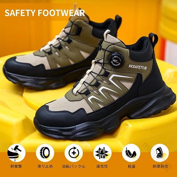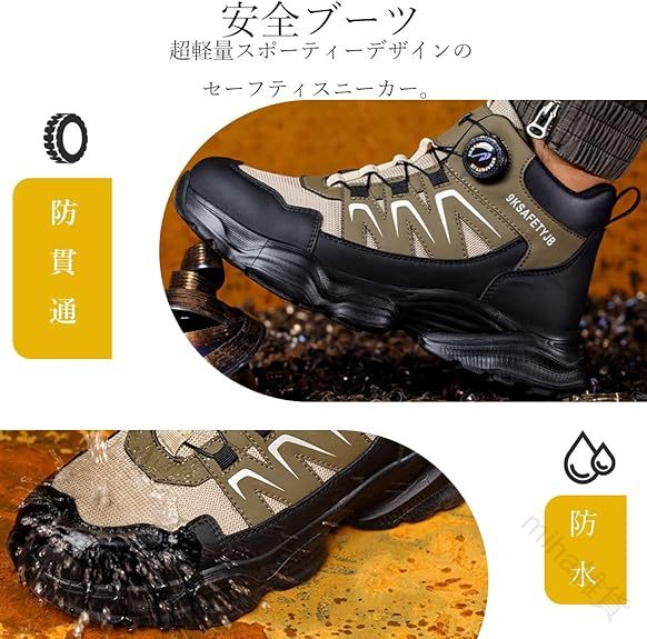 安全靴 ハイカット防水ブーツ 作業靴 ブラック カーキ 23.5cm 24.0cm 24.5cm 25.0cm 25.5cm 26.0cm 26.5cm 27.0cm 27.5cm 28.0cm 28.5cm 29.0cm