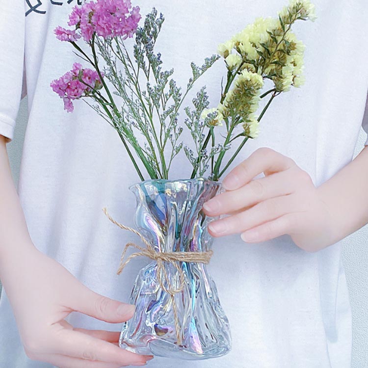 花瓶 ランダムシェイプ オーロラ ガラ クリア ホワイト オーロラ