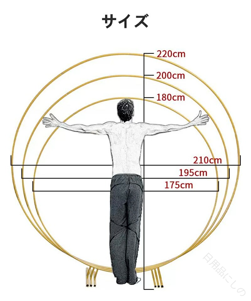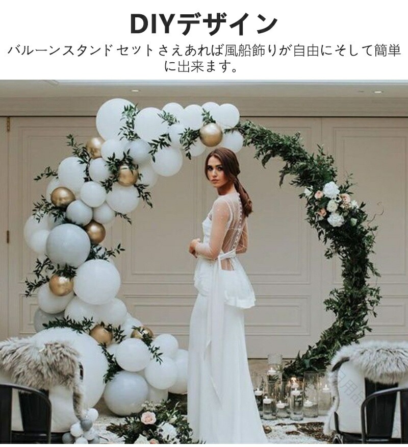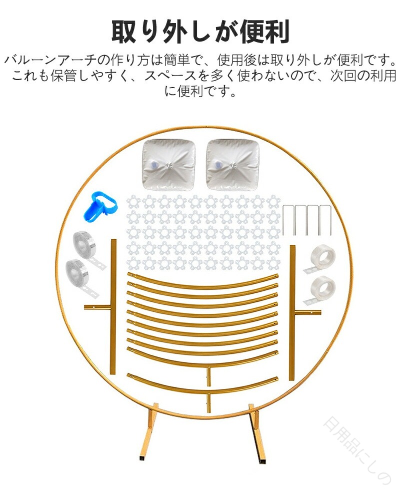 組み立て簡単!丸型バルーンアーチスタンド誕生日・結婚式・イベント装飾に大活躍パーティーを一気に華やかに演出する「バルーンサークル」登場!商品特徴丸型デザインが映える!シンプルなのにインパクト抜群!どんなシーンにもマッチするラウンド型で、写真映え・SNS映え間違いなし!組み立て簡単・工具不要軽量設計でパーツを差し込むだけの簡単構造。女性一人でもラクラク設置可能!風船をたっぷり飾れるホルダー構造市販のゴム風船でOK!お好きな色やサイズのバルーンを組み合わせて自由にデコレーション。繰り返し使える耐久素材しっかりとした素材で、イベントのたびに再利用できてコスパ抜群!アレンジ自由で多用途!LEDライトや花、チュールなどをプラスして、自分だけのバルーンアーチにカスタマイズ可能♪こんなシーンにおすすめ!【お誕生日会】自宅でも手軽に豪華なバースデー空間に【結婚式・前撮り】ウェディングフォトの背景として大人気【卒業・入学祝い】思い出に残る記念フォトを演出【店舗・開店祝い】華やかな店舗入口を演出【イベント・展示会】SNS映えするブース作りに!商品仕様商品名:丸型バルーンアーチスタンド(組み立て式)サイズ:約1.5M、1.8M、2M、2.2M(組立後の直径)重量:約1700g~(軽量・持ち運び便利)
