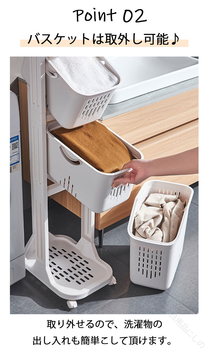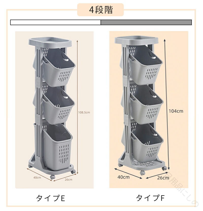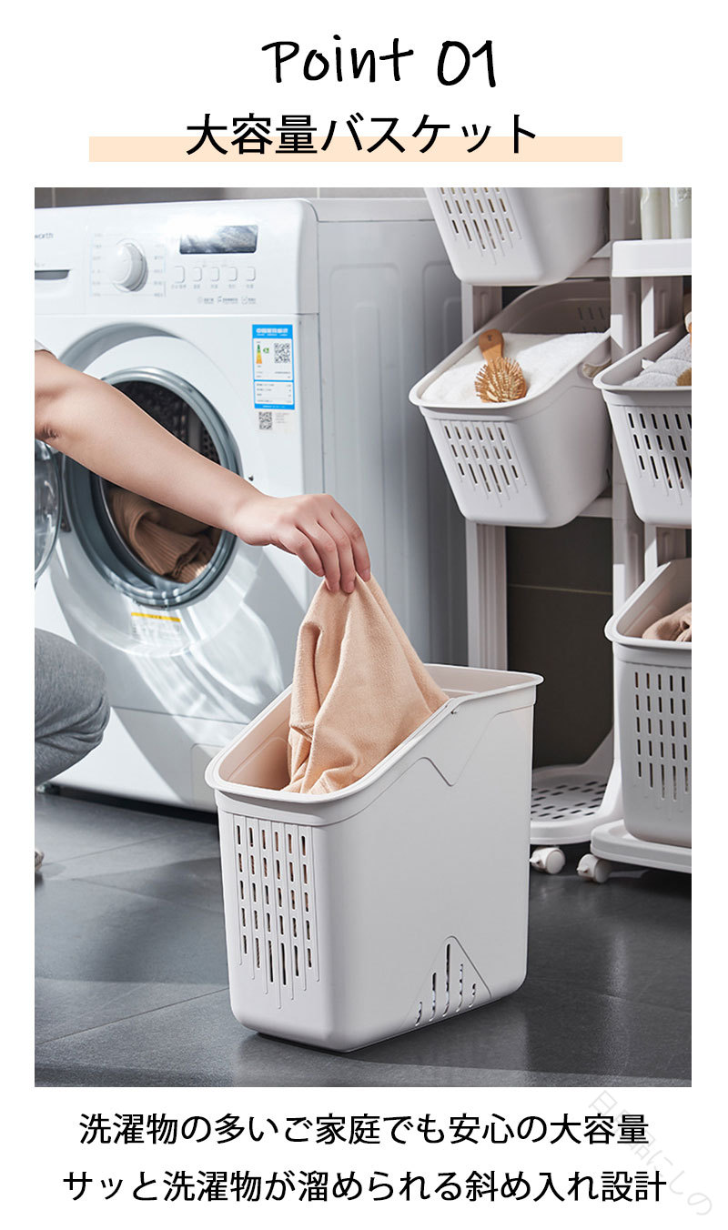 ランドリーバスケット キャスター付き ホワイト グレー タイプA タイプB タイプC タイプD タイプE タイプF