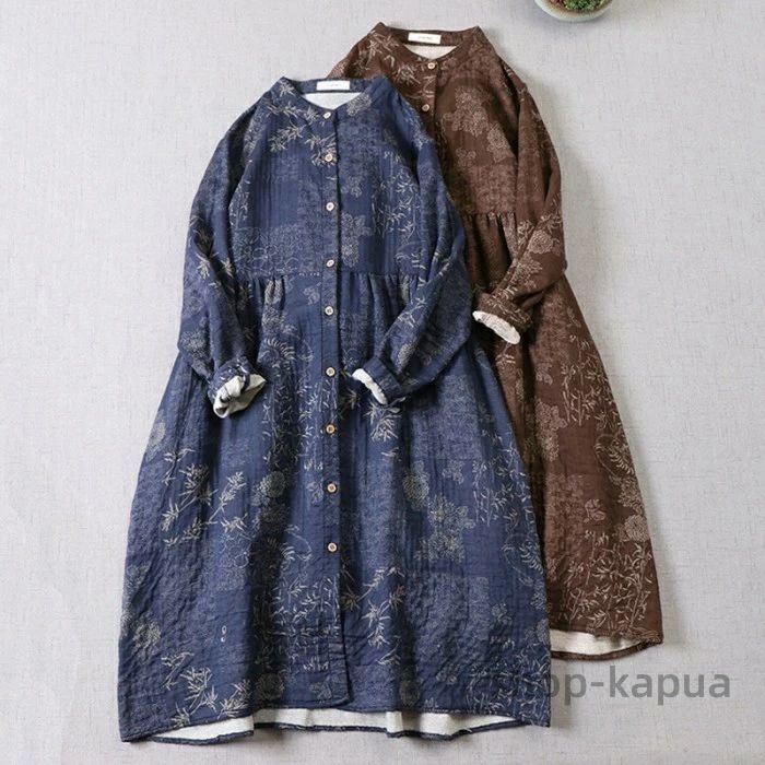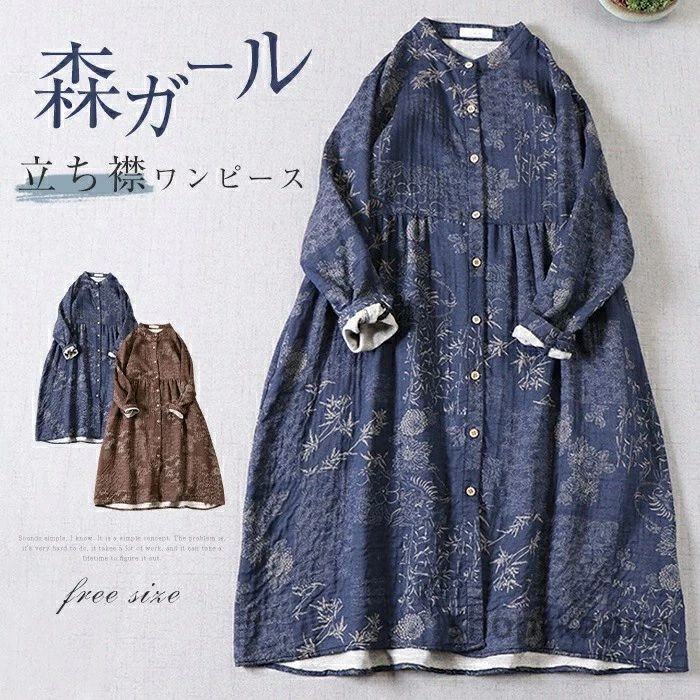 ガーゼワンピース チュニック レディー ワンピース 続々登場 ネイビー コーヒー