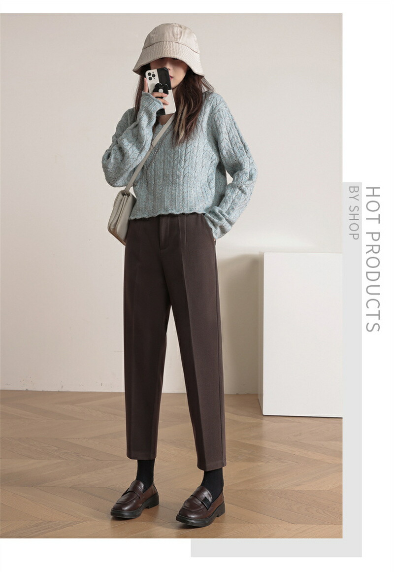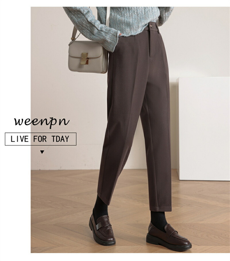 ロングパンツ レディース 冬 ウール調 ボトムス パンツ 新登場! コーヒー ブラック S M L XL 2XL