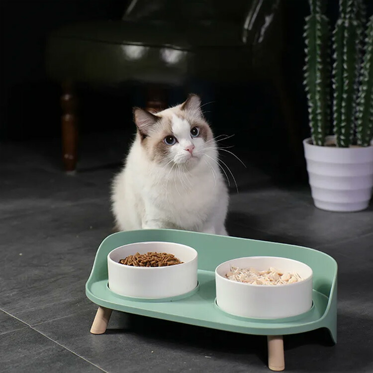 ペットフードスタンド 食器台 ごはん入 グリーン ホワイト
