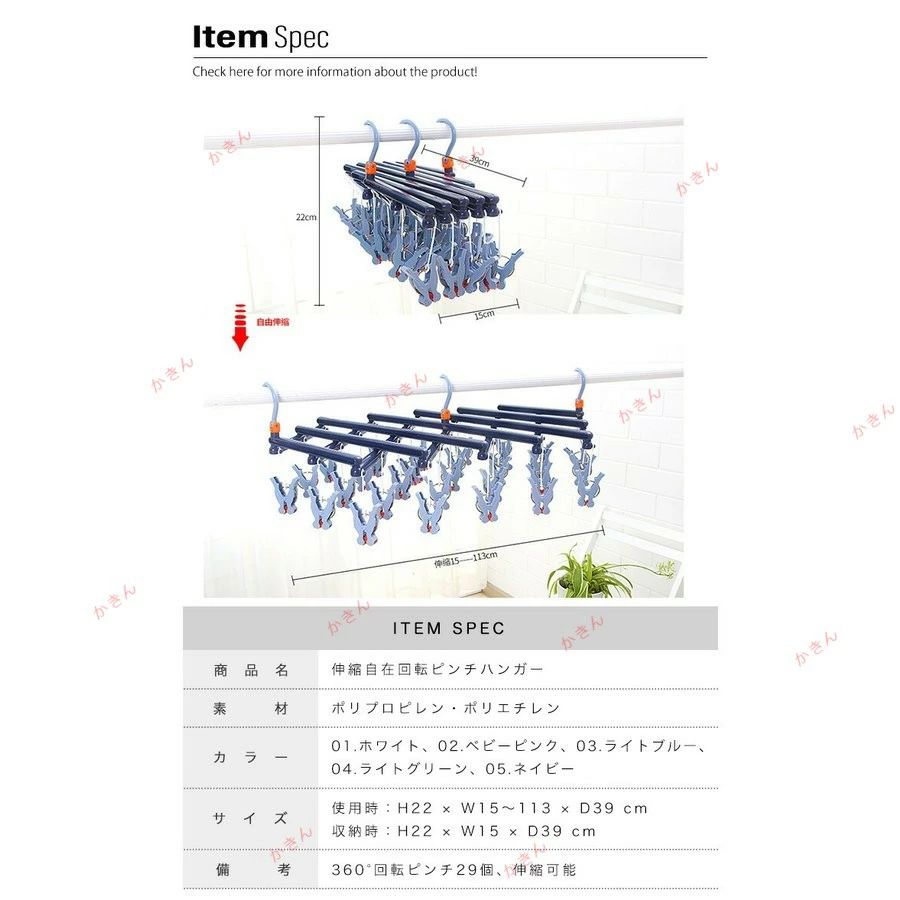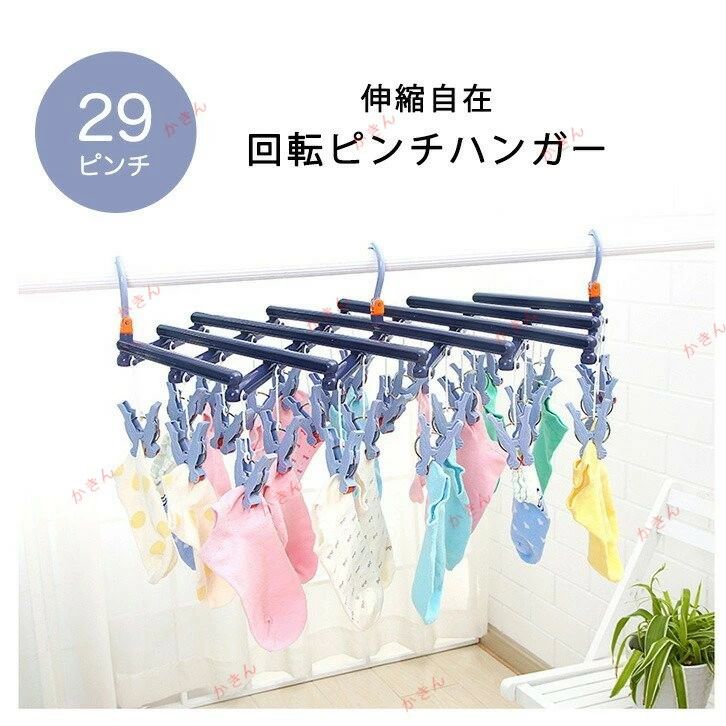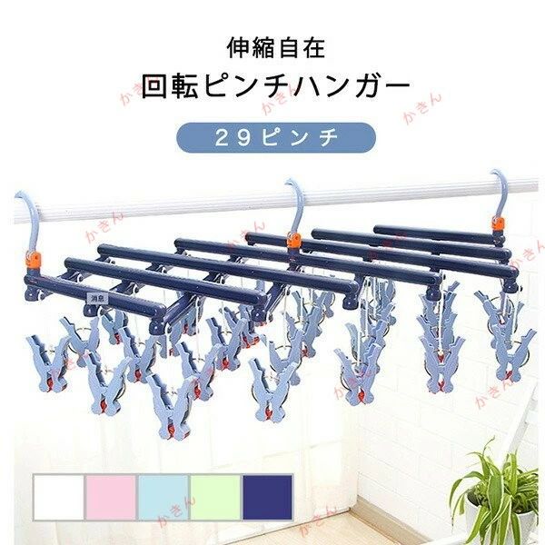 洗濯ハンガー 回転ピンチハンガー 伸縮 ホワイト ベビーピンク ライトブルー ライトグリーン ネイビー