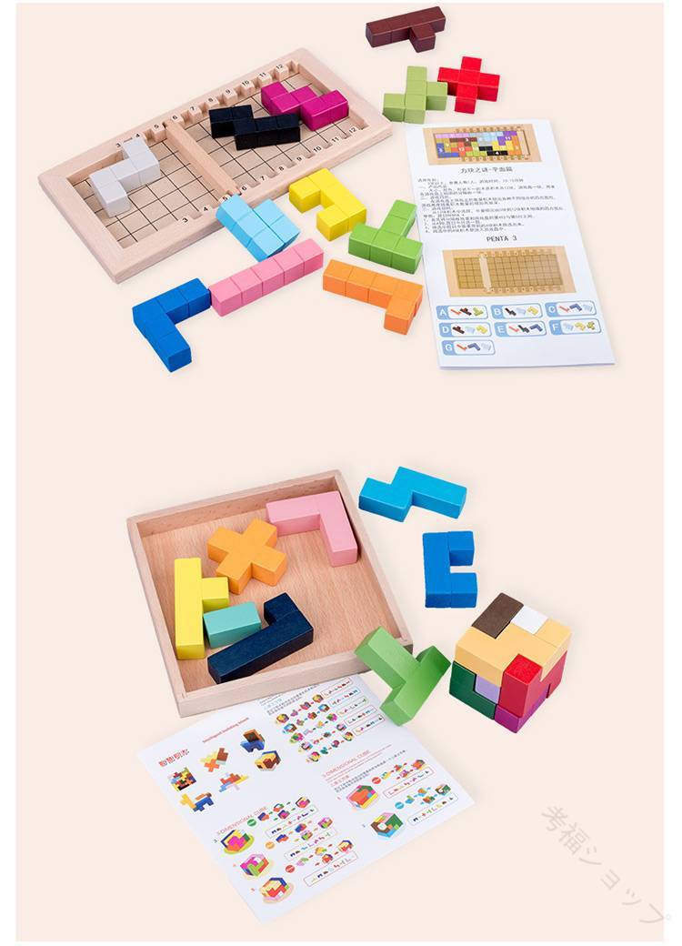 1. 木製パズル 知育玩具 モンテッソ タイプ1 タイプ2