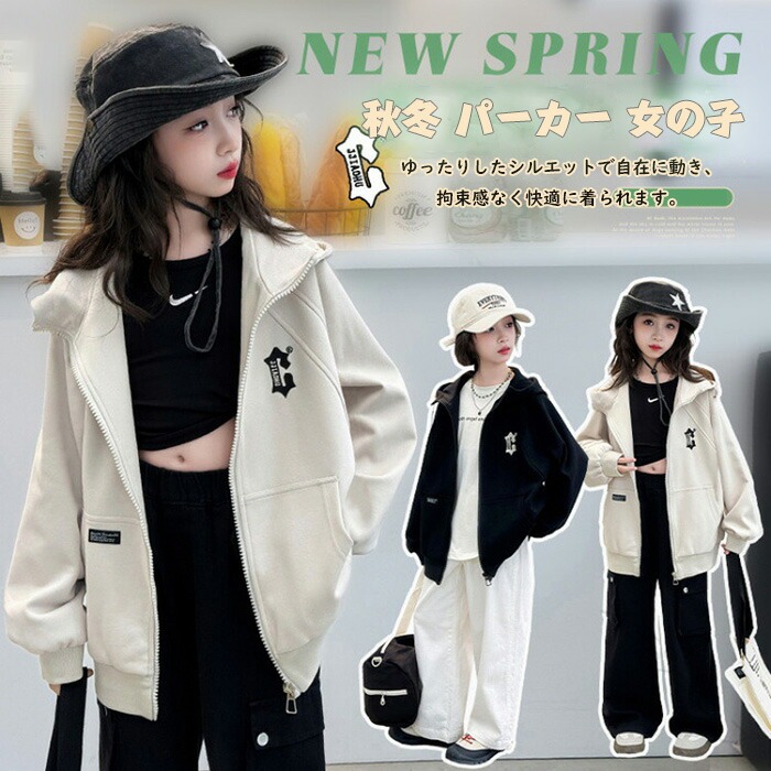 キッズ パーカー 女の子 ジャンパー キッズ ベビー マタニティ 早い者勝ち ベージュ ブラック 120cm 130cm 140cm 150cm 160cm 170cm