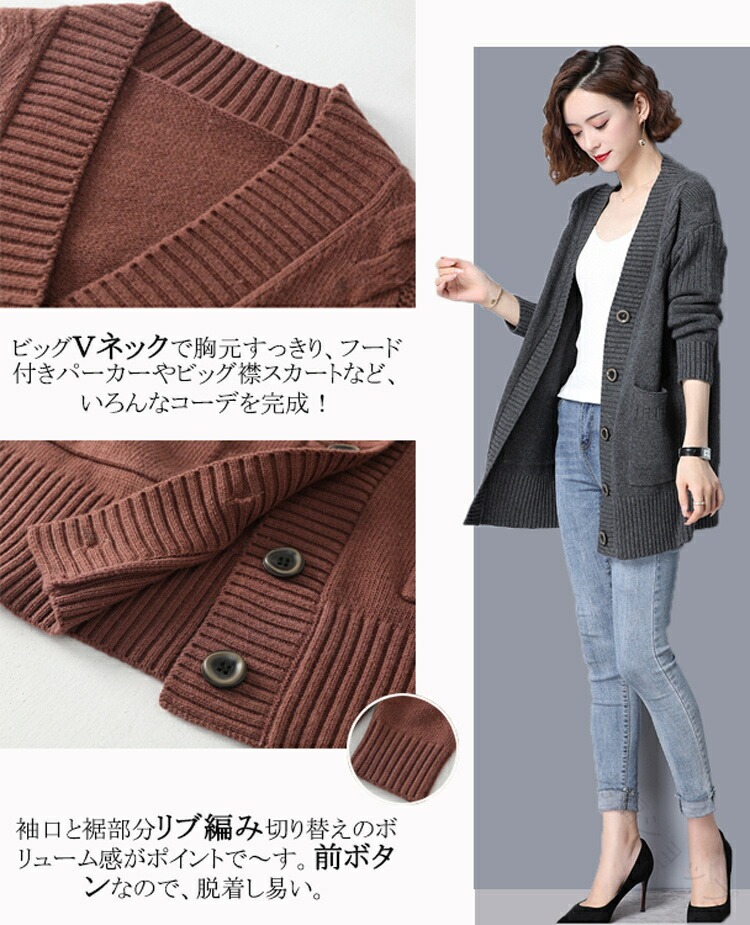 冬 ニットカーーディガン レディース レディースファッション 続々入荷中 ベージュ レンガ ブラウン グレー