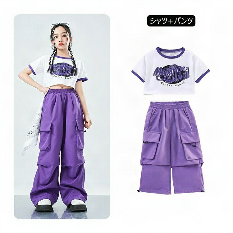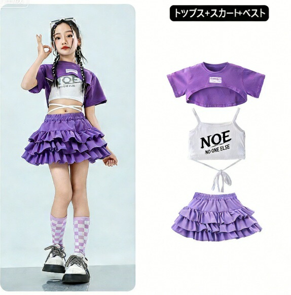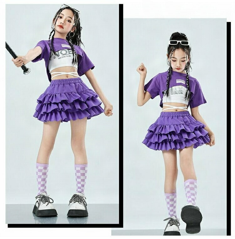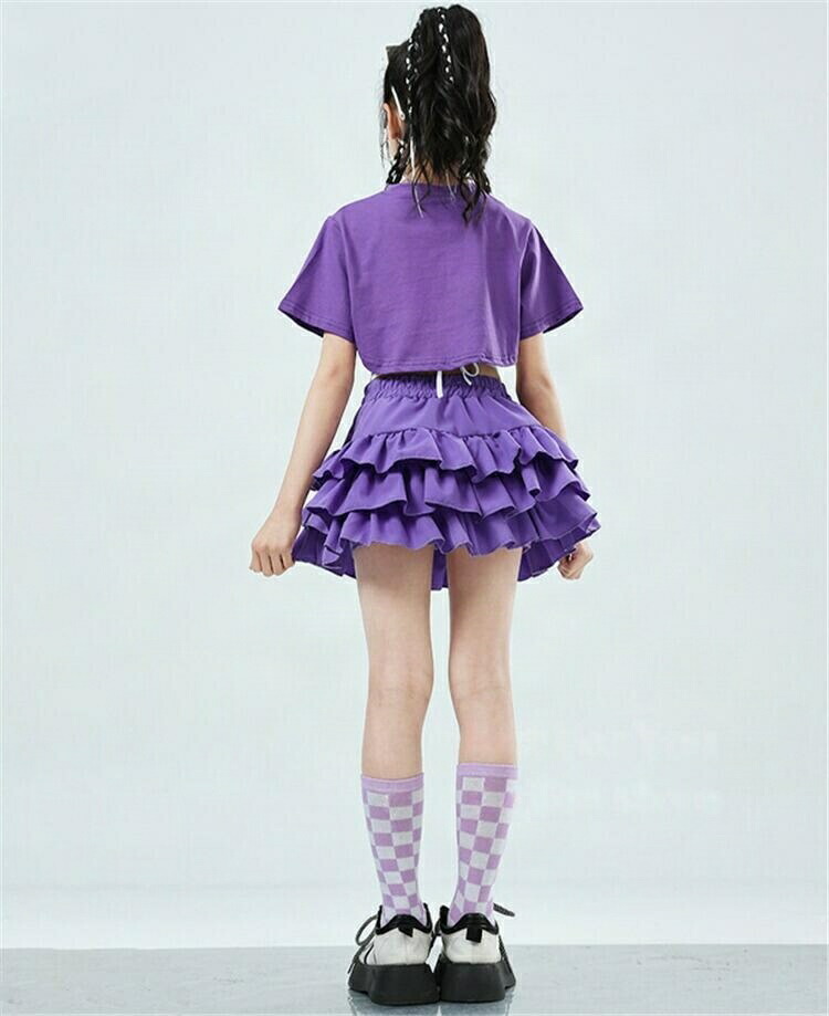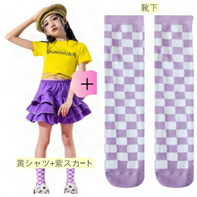 キッズダンス衣装 セットアップ 女の子 キッズ スーツ カジュアルセットアップ カジュアルスカートセット 続々入荷中 半袖シャツ-パープル 半袖シャツ-ホワイト スカート単品 パンツ単品 スカート3点セット パンツ2点セット 黄シャツ+紫スカート+靴下 110 120 130 140 150 160 170 180