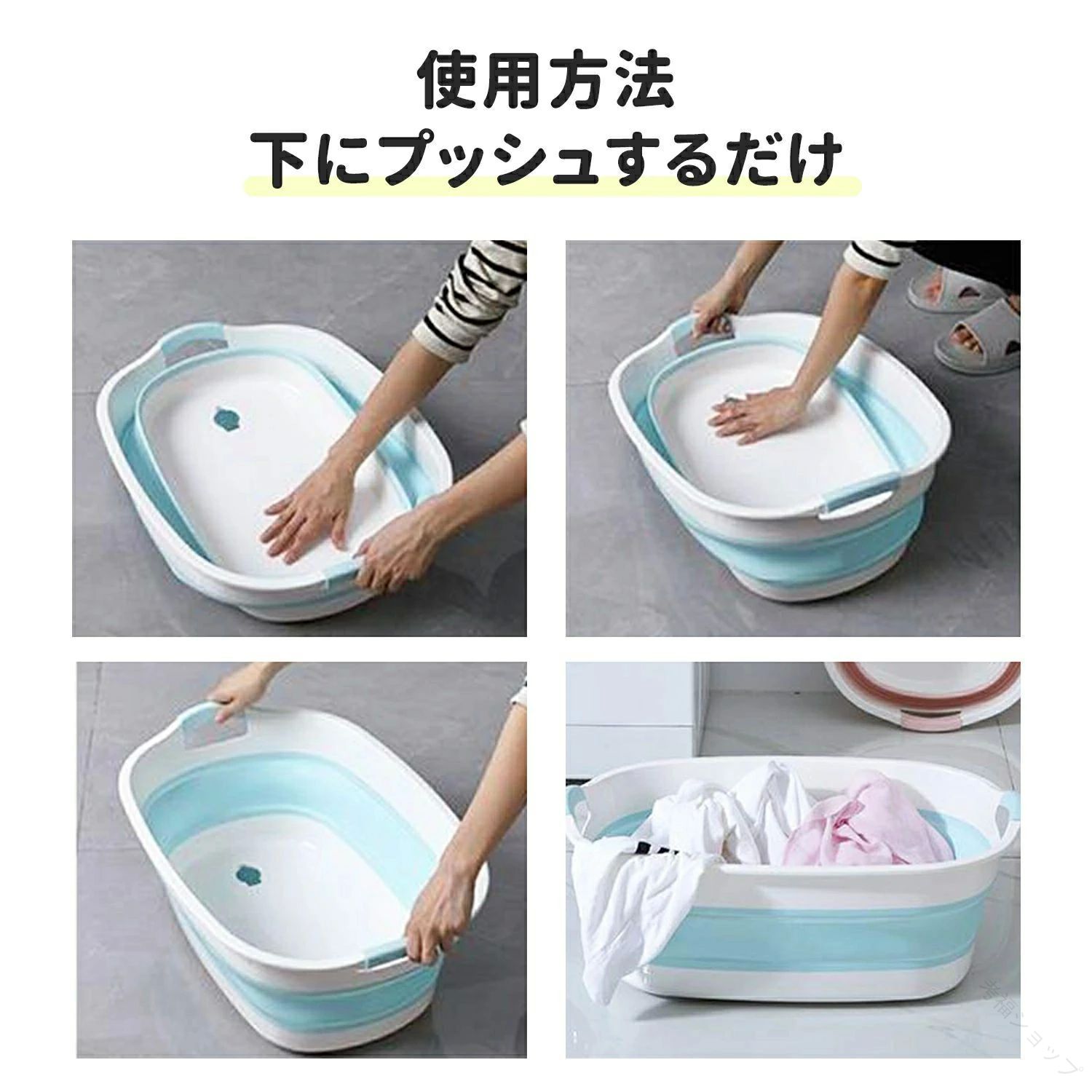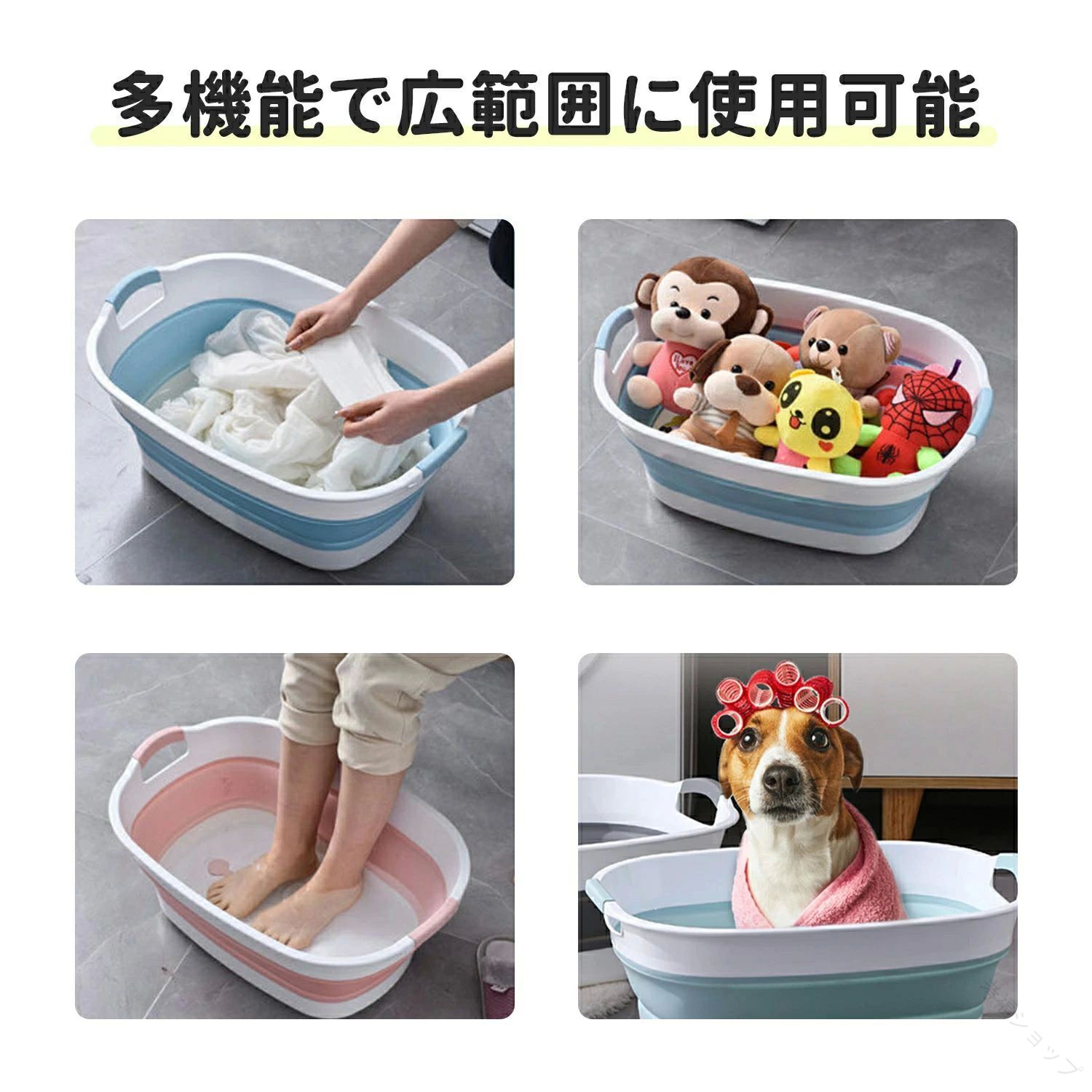 洗い桶 大型 折り畳みたらい 足湯 つ ピンク ブルー グレー M:43×32cm L:55×38cm