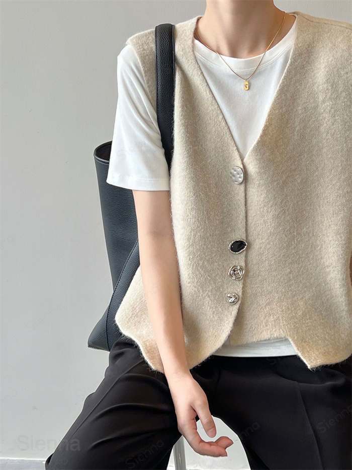 ニット ベスト レディース トップス トップス ベスト 豊富な品揃え ブラック イエローキャメル アイボリー ベージュ