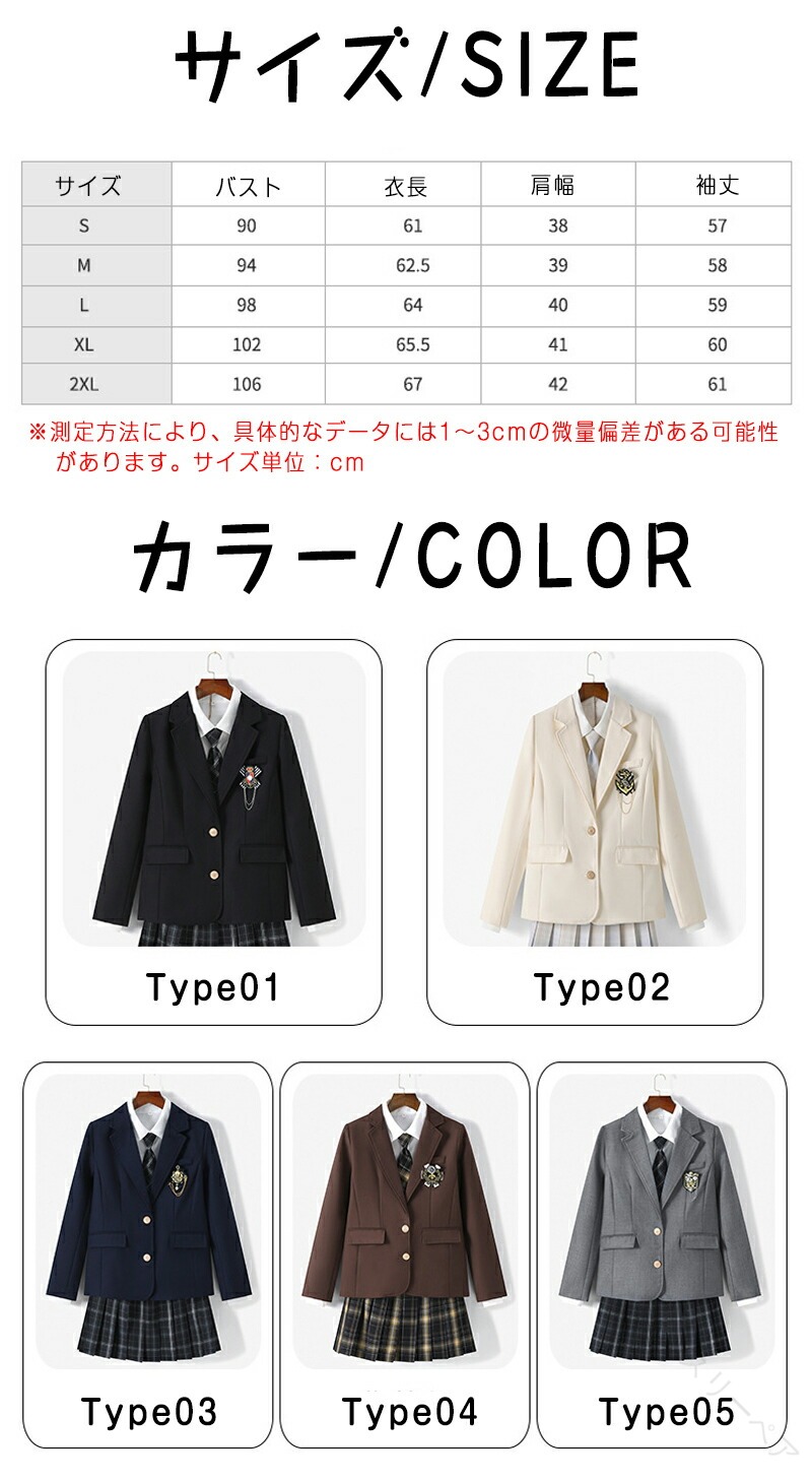 スクールブレザー 女子制服 通学ブレザ 学生服 ジャケット 続々入荷中 Type01 Type02 Type03 Type04 Type05 S M L XL 2XL