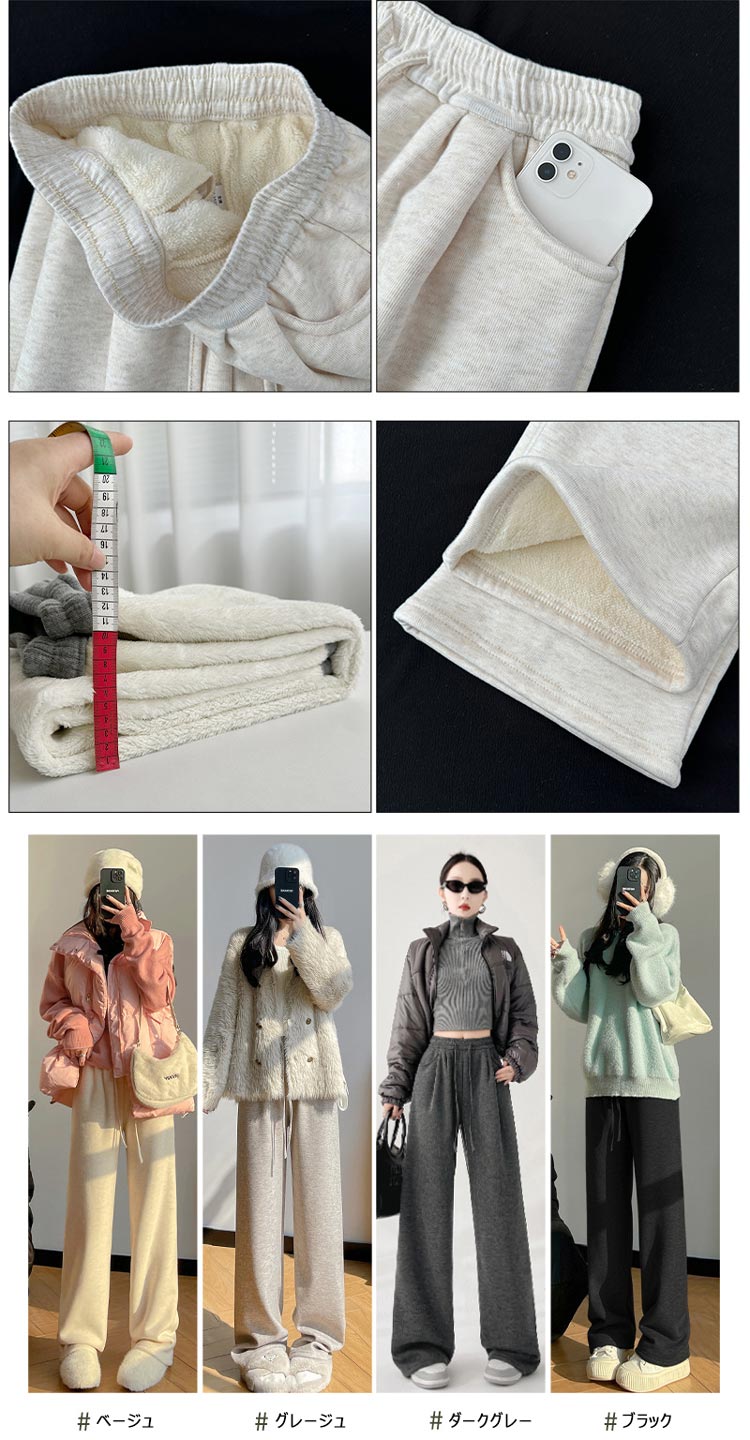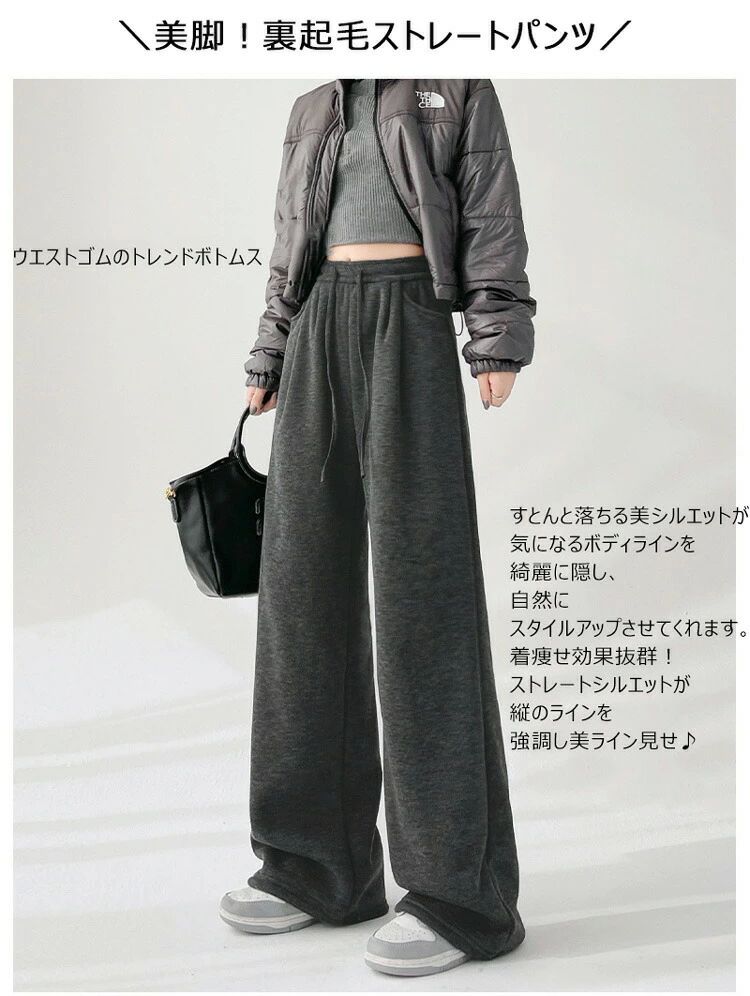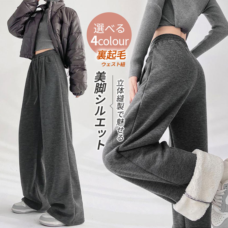 暖かい ワイドパンツ 裏起毛 ウェス ボトムス パンツ 続々登場 ベージュ グレージュ ダークグレー ブラック S M L XL