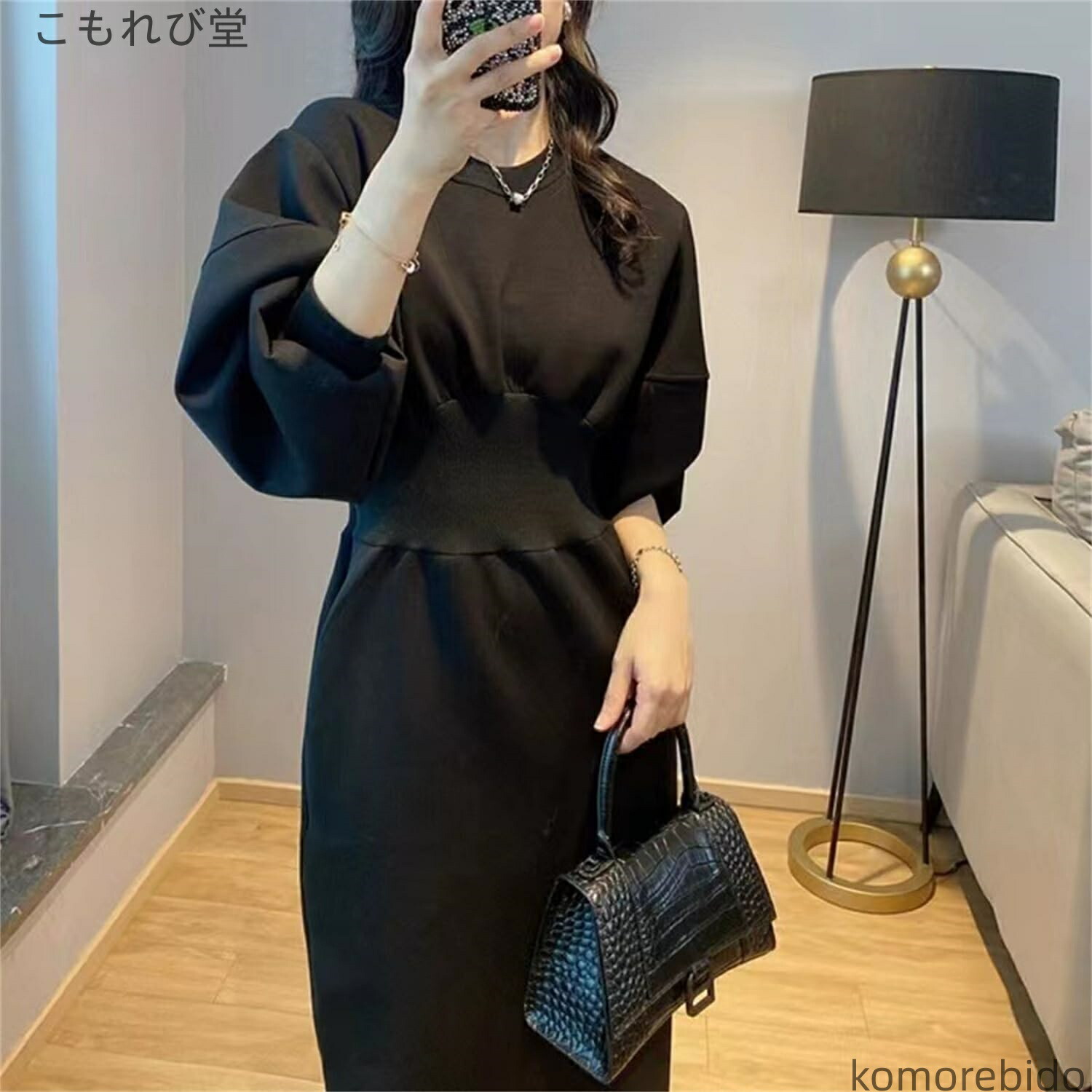 レディース 秋 ロングワンピース 秋冬 ワンピース 超目玉商品 グレー ブラック ホワイト ブルー