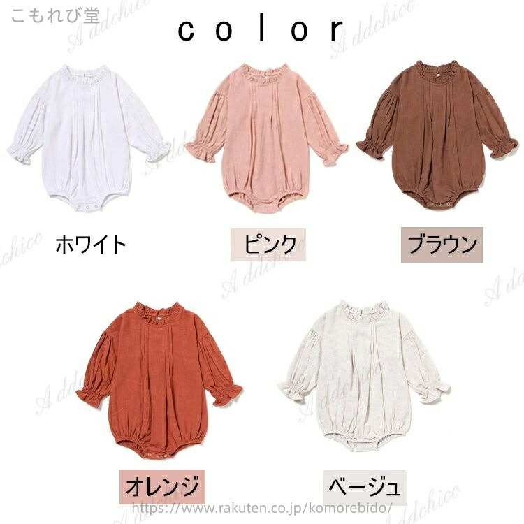 ロンパース 丸襟 長袖 春夏 韓国 ベ ベビー ベビー服 ファッション カバーオール ロンパース 特集 ホワイト ピンク ブラウン オレンジ ベージュ 59 66 73 80 90