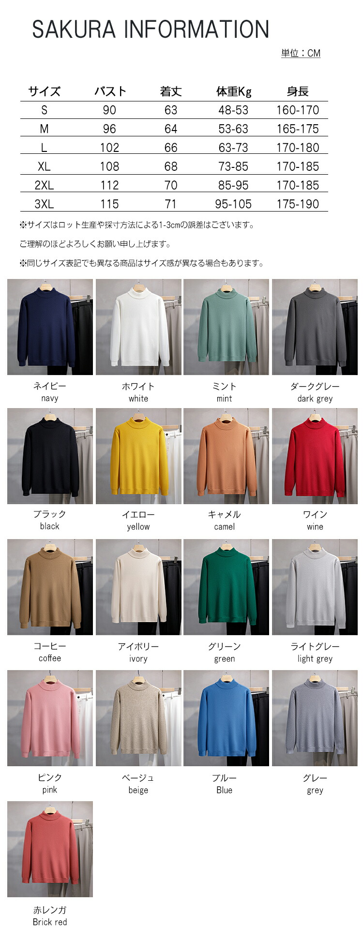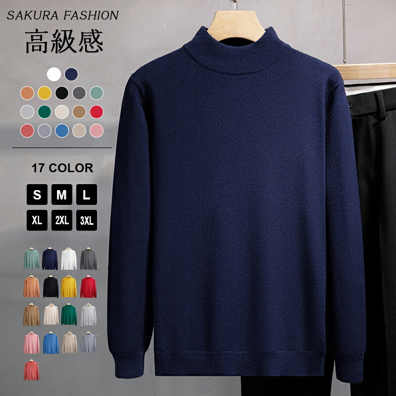 ニット セーター モックネック メンズ メンズファッション 豊富 S M L XL 2XL 3XL ブラック ホワイト ライトグレー グレー ダークグレー ミント ネイビー イエロー キャメル ワイン コーヒー アイポリー グリーン ピンク ベージュ ブルー 赤レンガ