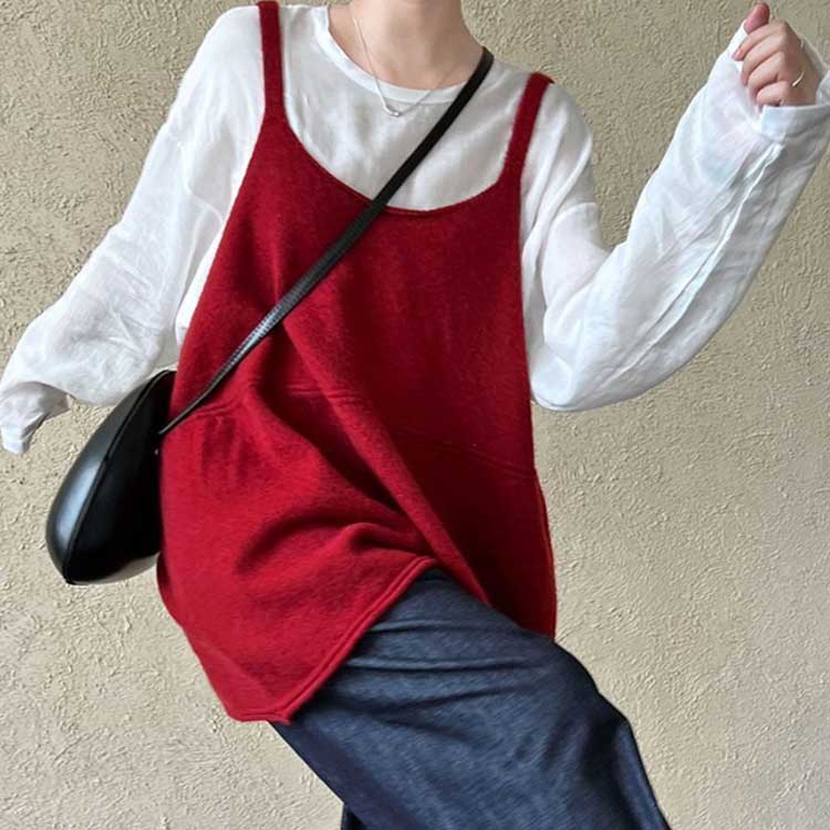 ニットベスト レディース 秋 ニットビ トップス ニット セーター ニットキャミソール 特集 レッド ブラック グレー オフホワイト S M L XL 2XL
