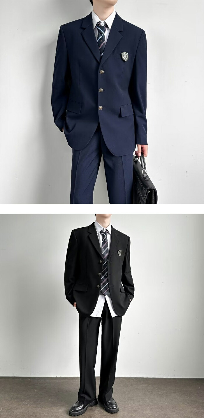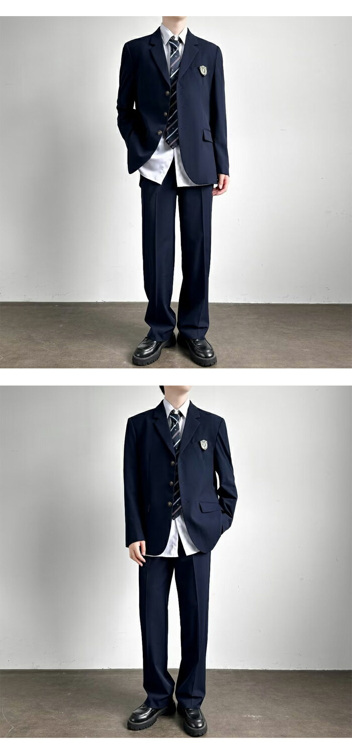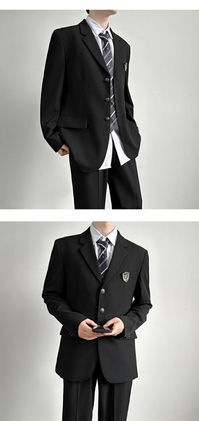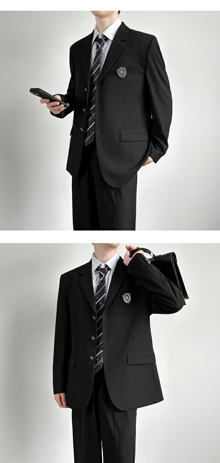 フォーマルスーツ 男の子 入学式 長袖 フォーマル ゆったり おしゃれ 卒業式 制服5点セット スーツジャケット シャツ 黒いズボン バッジ付き ネイビー ブラック ネクタイ