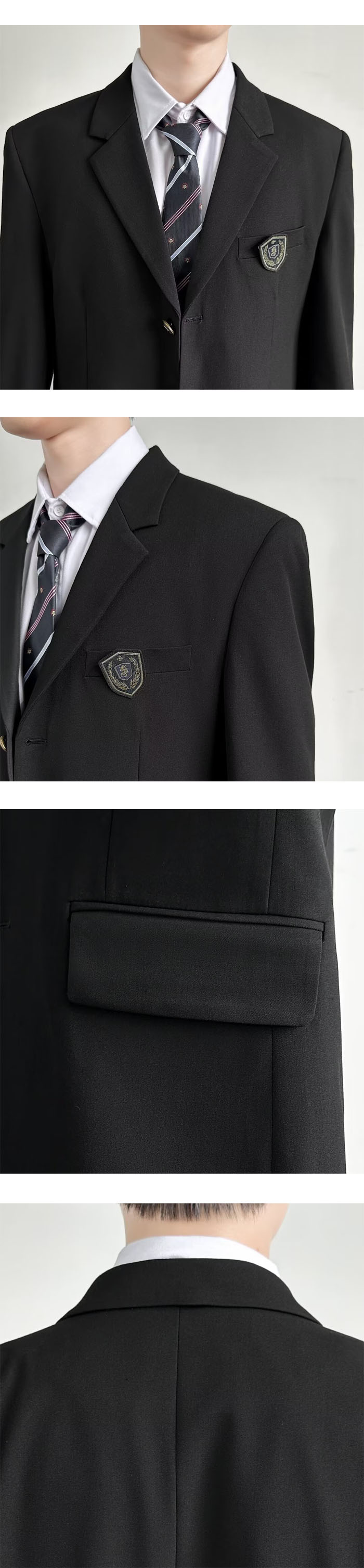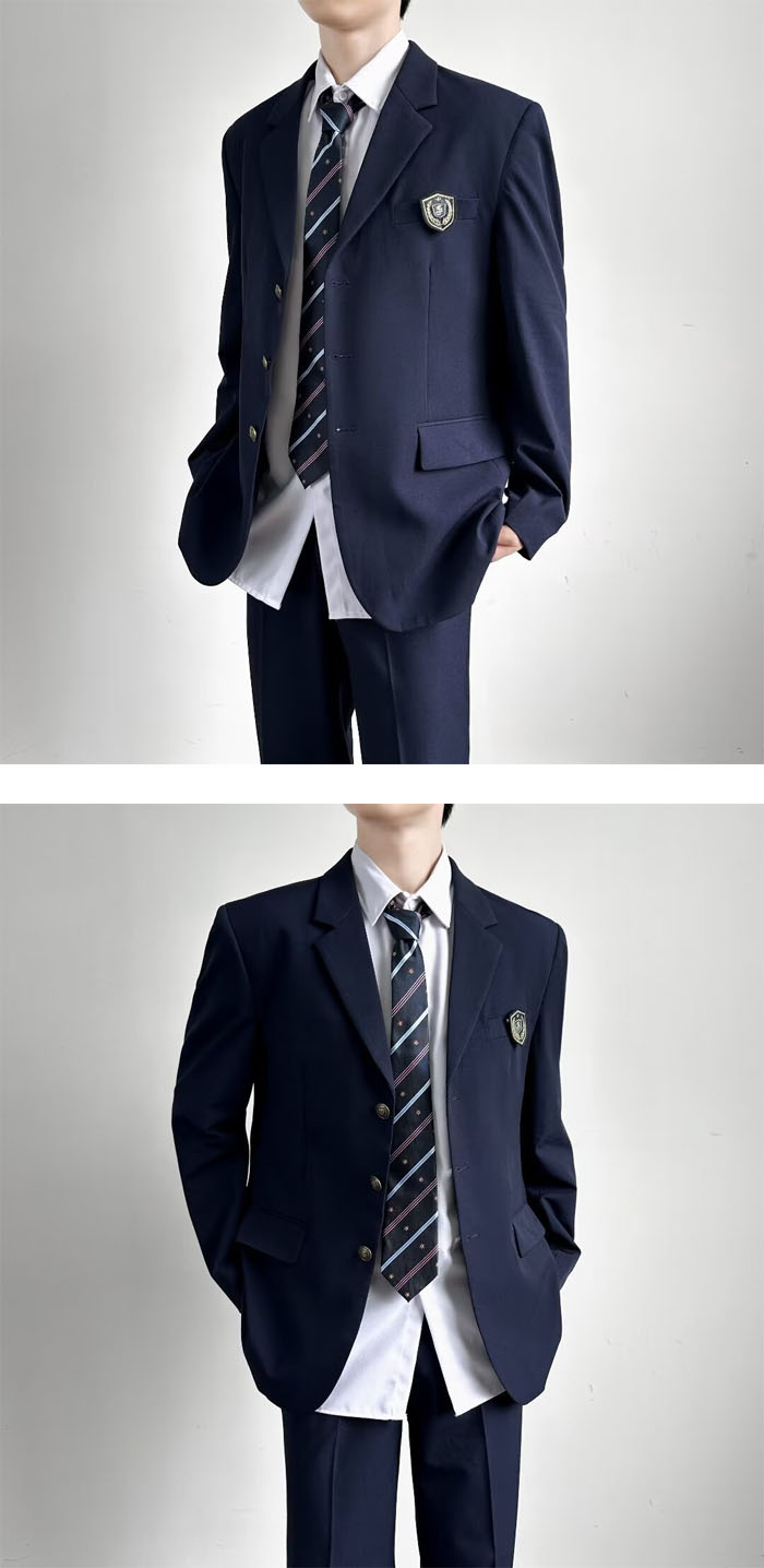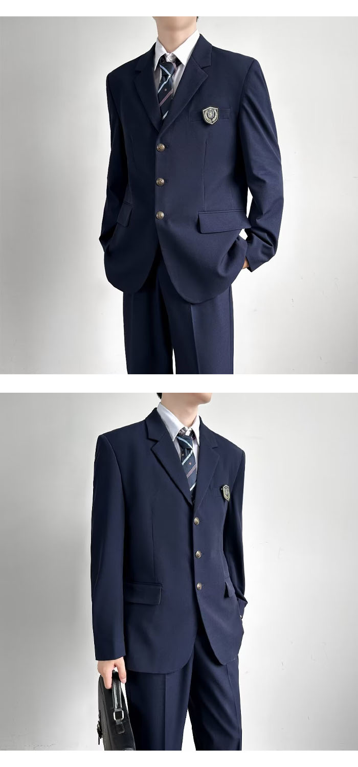 フォーマルスーツ 男の子 入学式 長袖 フォーマル ゆったり おしゃれ 卒業式 制服5点セット スーツジャケット シャツ 黒いズボン バッジ付き ネイビー ブラック ネクタイ