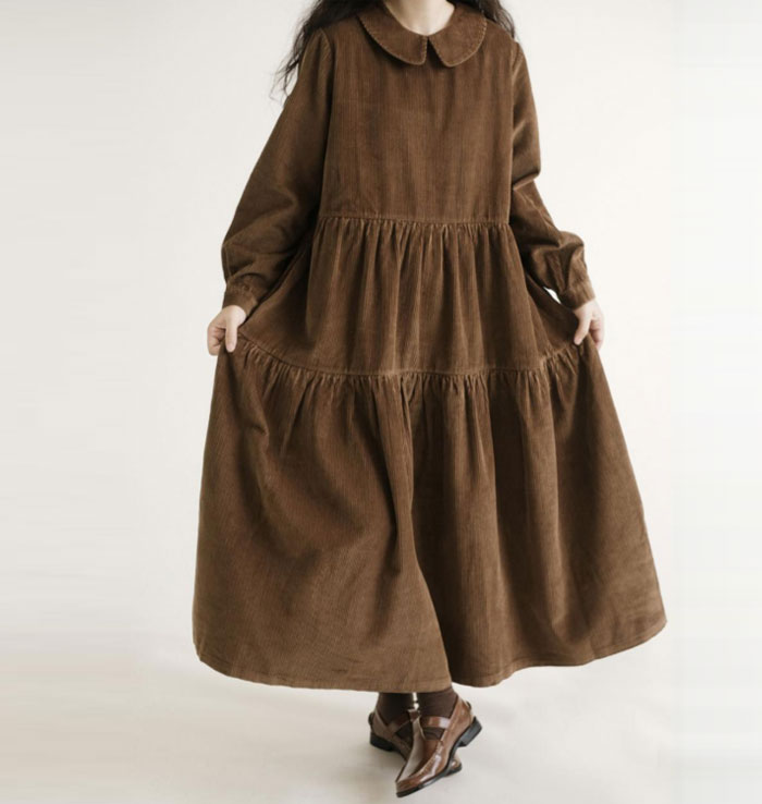 ロングワンピース コーデュロイ レディ レディースファッション 続々登場 M L XL XXL