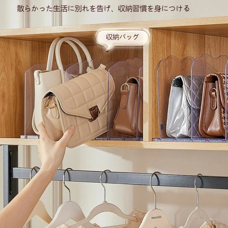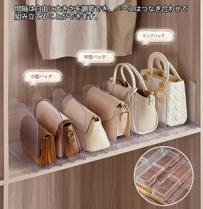 バッグ収納スタンド 3 4 5列 カバン 収納 鞄 スマート クローゼット収納 調整できる仕切り幅 台座連結可能 卓上収納ラック書類ホルダー キッチン収納 押入れ収納 ホワイト 透明 便利
