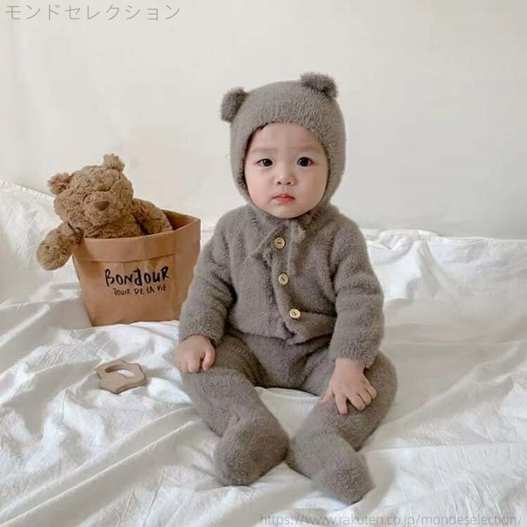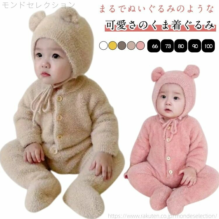 くまちゃん 熊耳 ロンパース 長袖 動 キッズ ベビー マタニティ 特集 ホワイト ブラウン イエロー ピンク グレー 66 73 80 90 100
