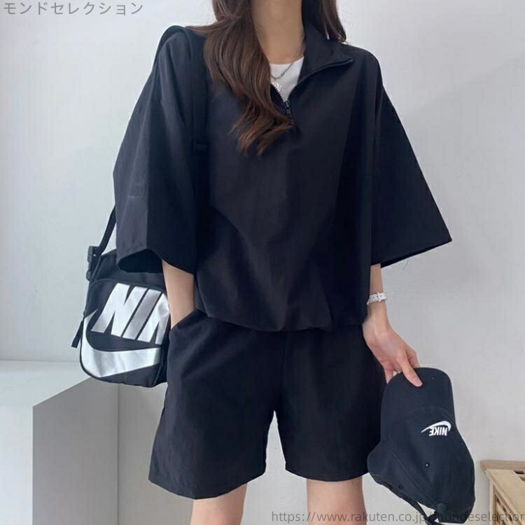 ジャージ 2点セット ショート丈パンツ スーツ セットアップ パンツスーツ 特集 ブラック グリーン ブルー M L XL 2XL 3XL