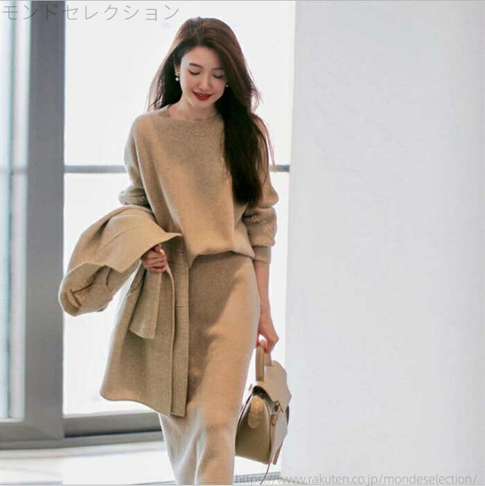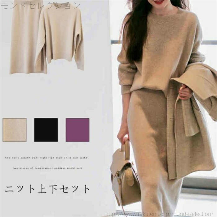 セットアップ ニットセットアップ レデ レディースファッション 豊富 ベージュ ブラック パープル S M L XL