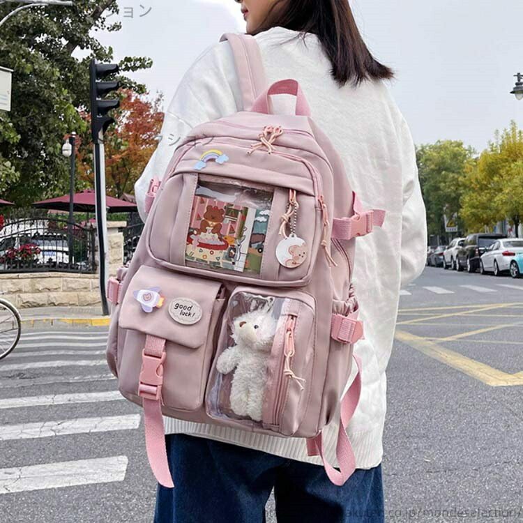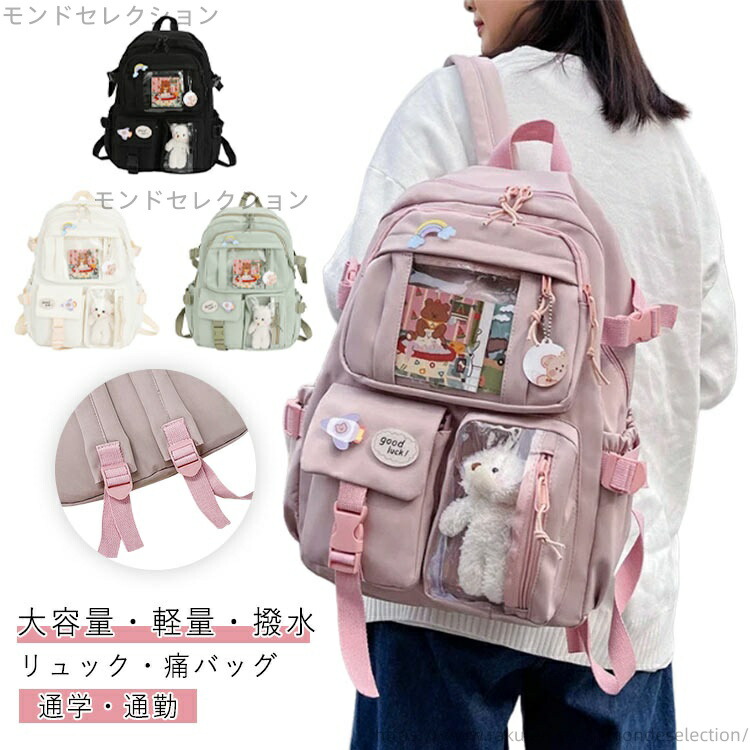 韓国 痛リュック 大容量 リュック 高 バッグ レディースバッグ バックパック リュック 新登場! アイボリ ピンク グリーン ブラック ブルー パープル