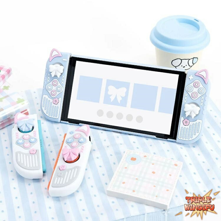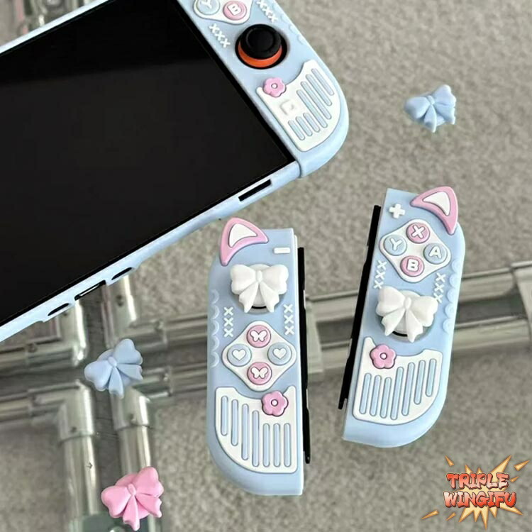シリコン素材 ケース コントローラー用 ホワイト ブルー 2/スティックカバー付き OLED/スティックカバー付き