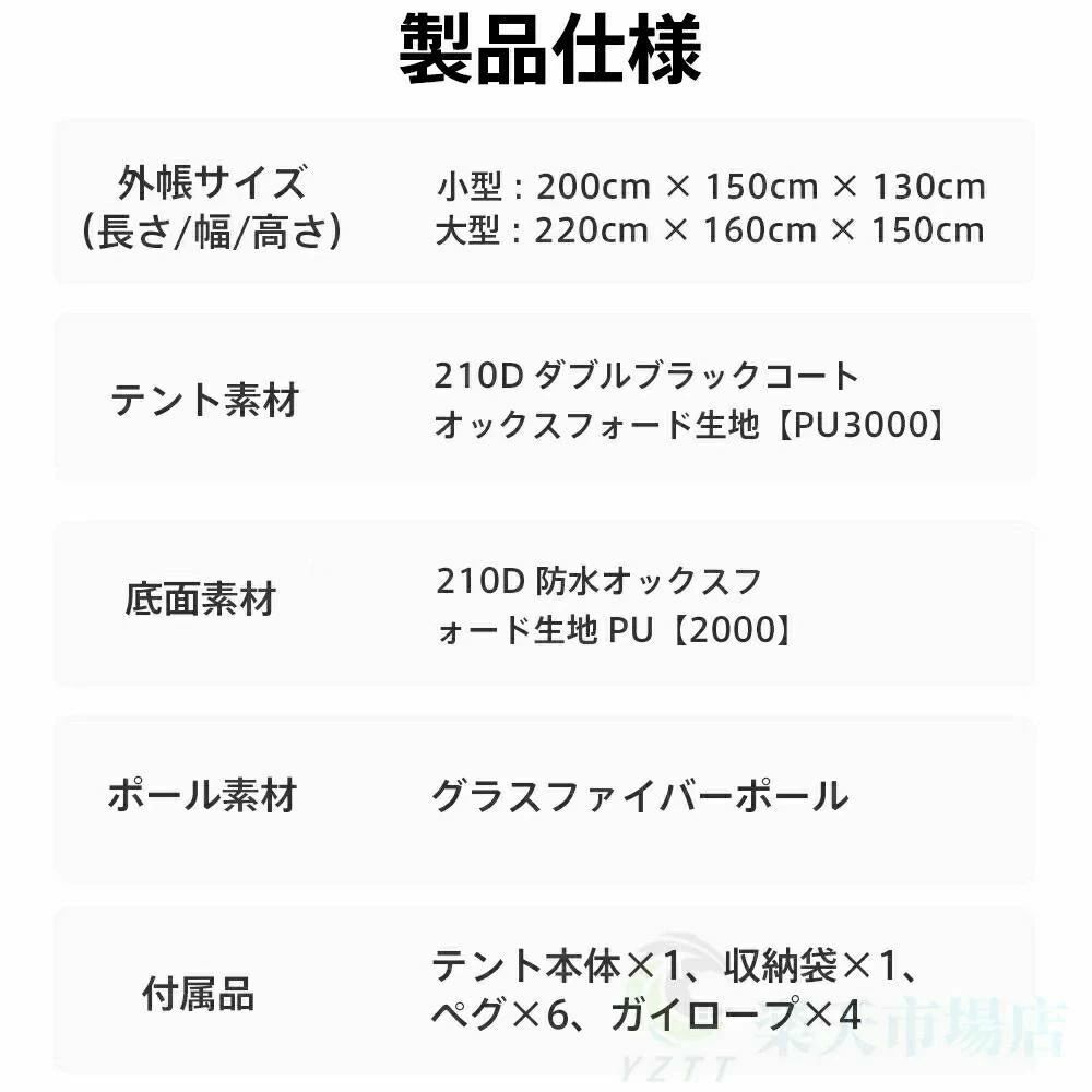 ワンタッチテント ポップアップテント スポーツ アウトドア 人気 小型(1~2人用) 大型(3~4人用)