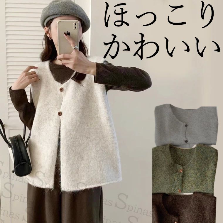 制服 レディース ゆっ 50代 ロング トップス ベスト 早い者勝ち グレー グリーン ブラウン オートミール