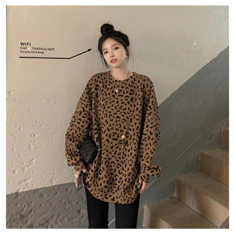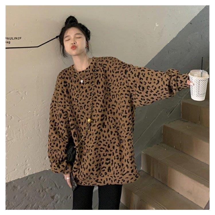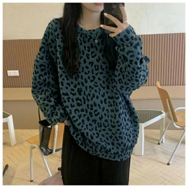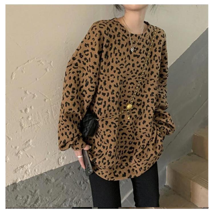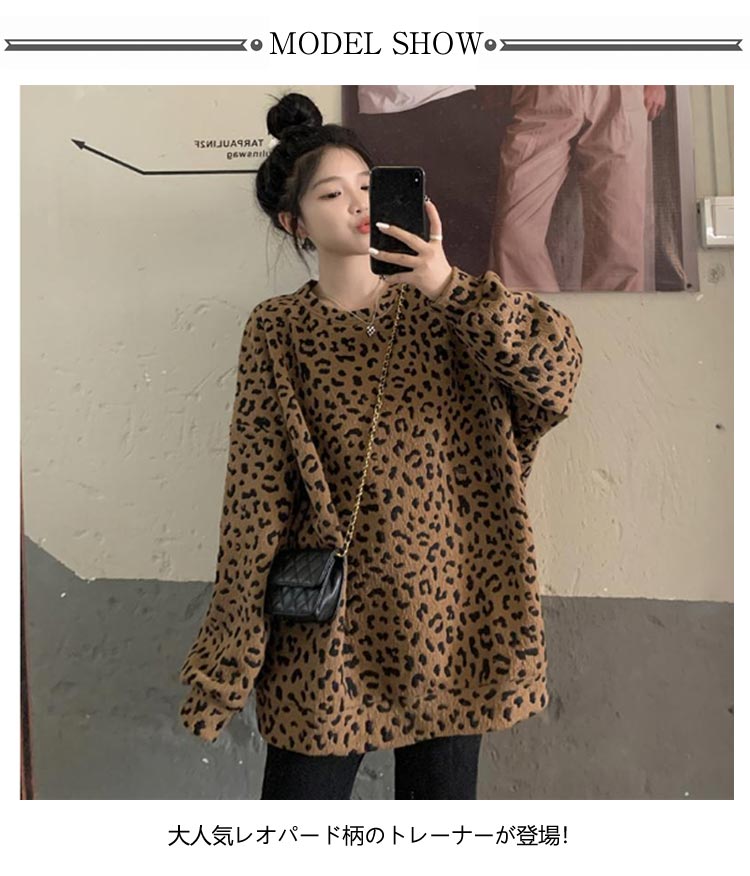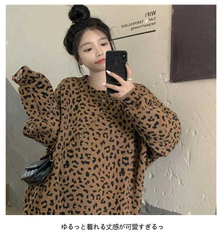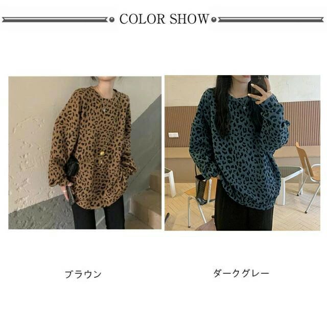カジュアル トップス レオパード柄 冬 レディースファッション 特集 ダークグレー ブラウン L XL 2XL 3XL 4XL