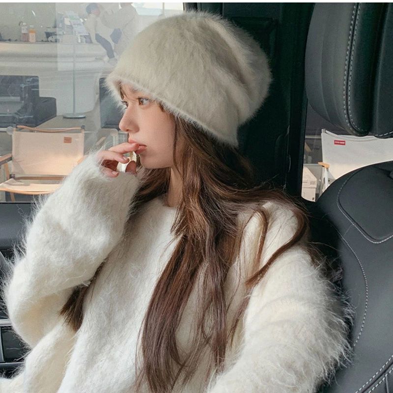 大人気 ルーズワッチキャップ ラビットファー 帽子 母の日 レディース ニット帽 ビーニー 無地 もこもこ 秋冬 防寒対策 小顔効果 暖かい きれいめ おしゃれ 可愛い