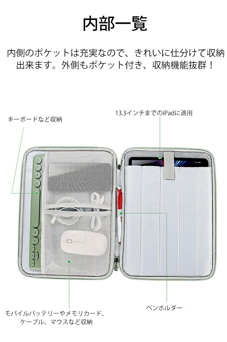 タブレット ケース iPad スリーブ ブラック ネイビー グレー ピンク グリーン 10.8-11inch 12.9-13inch