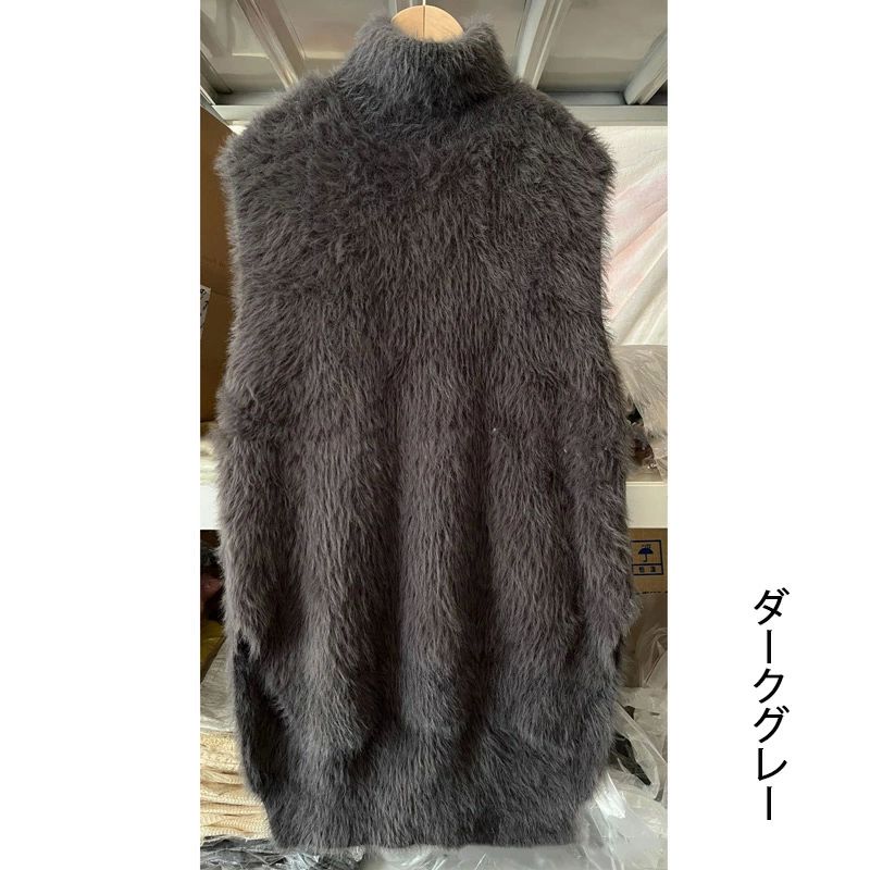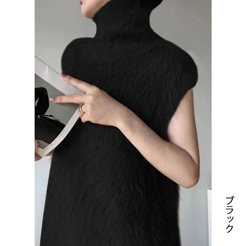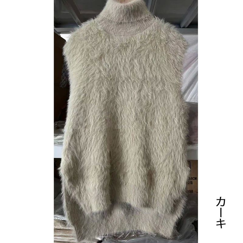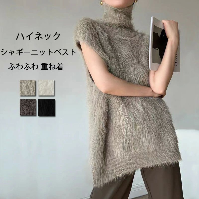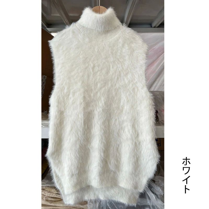 ハイネック ニットベスト シャギー レ トップス ベスト 豊富な品揃え カーキ ブラック ホワイト ダークグレー
