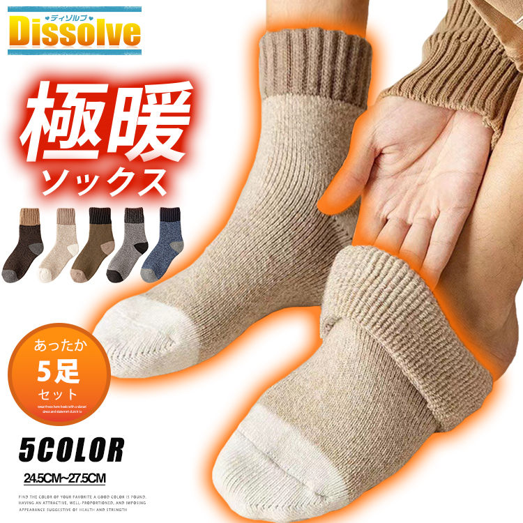 あったか靴下ソックス5足セット極暖靴下 メンズ 靴下 レッグウェア 靴下 早い者勝ち ダークグレー ブルー ブラウン ベージュ オリーブ