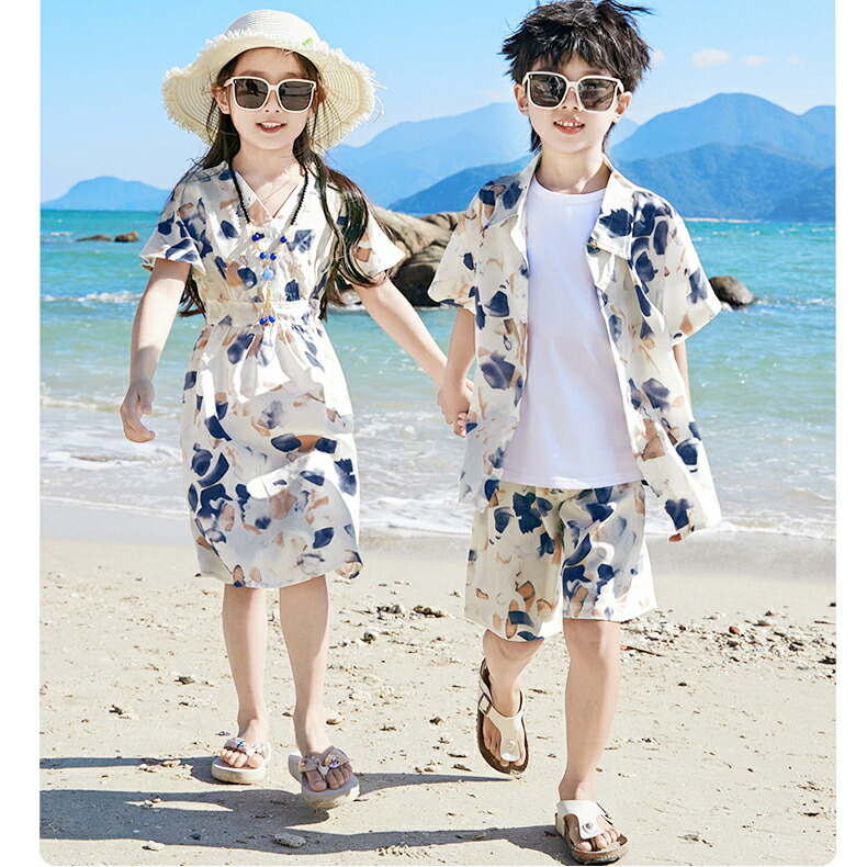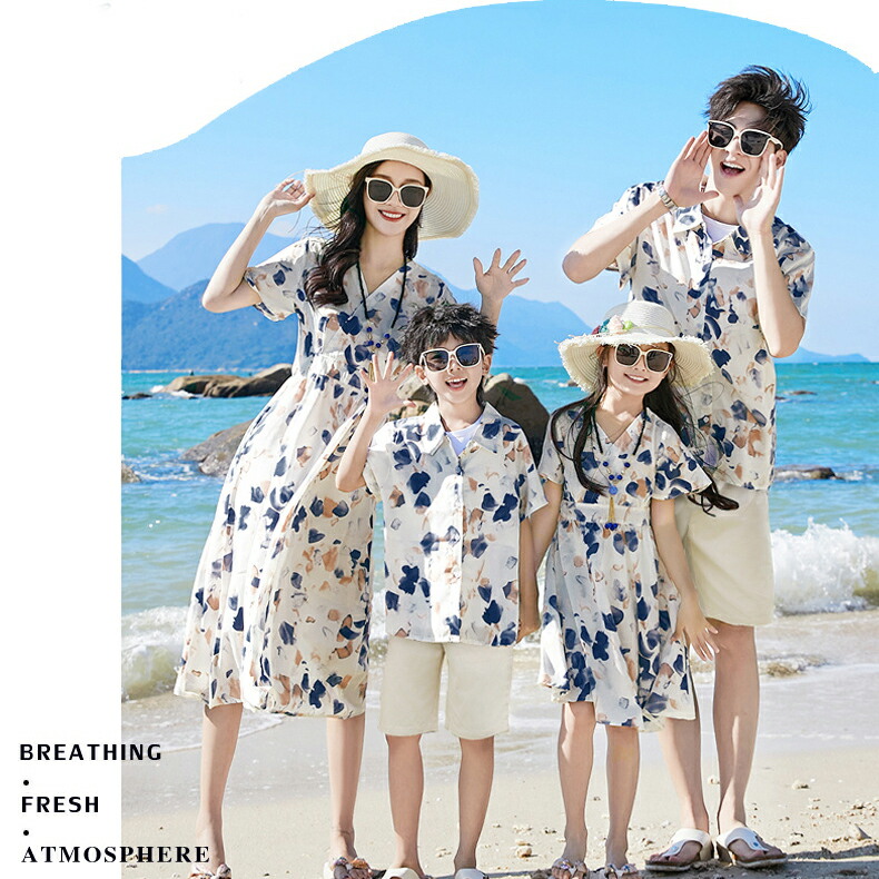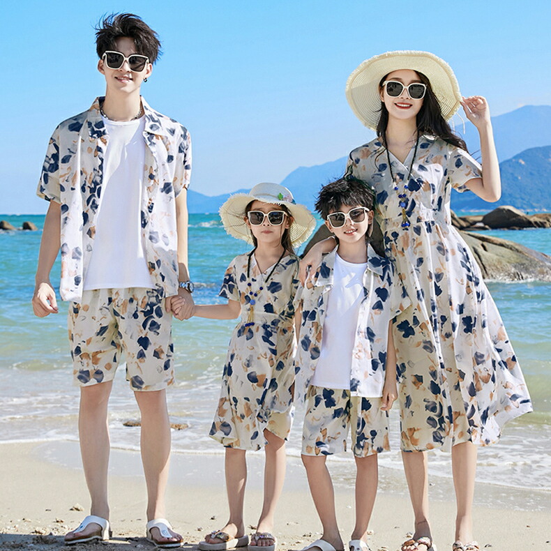 親子コーデ シャツ 親子 ペアルック 白Tシャツ 花シャツ ベージュパンツ 花パンツ 花シャツ+花パンツ ワンピース 90 100 110 120 130 140 150 160 S M L XL 2XL 3XL 4XL