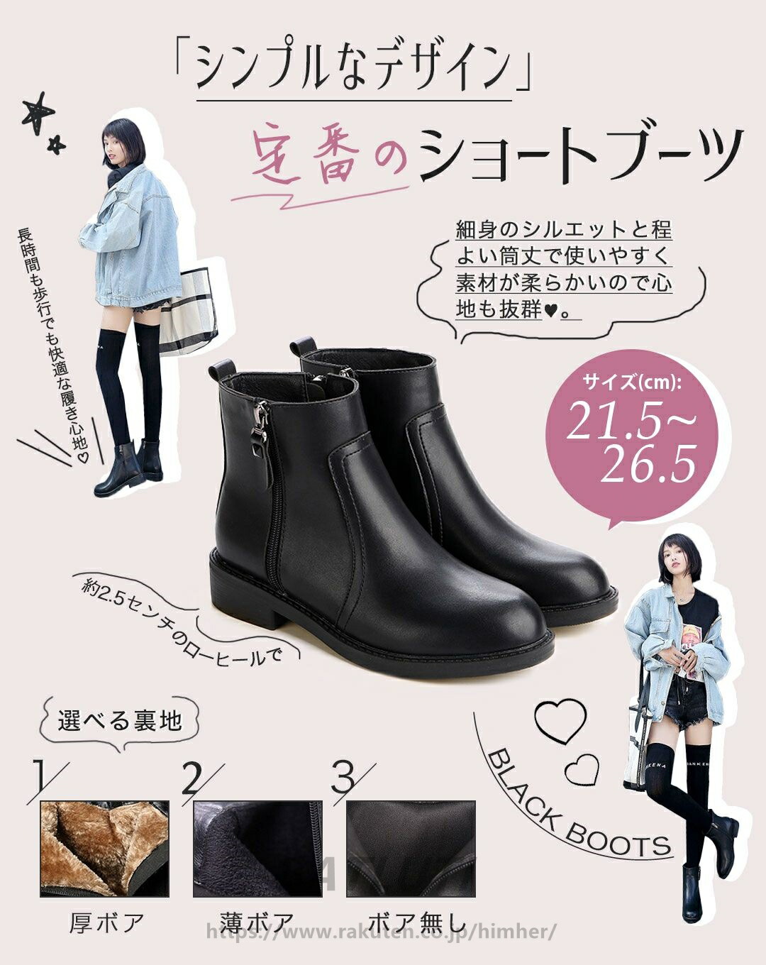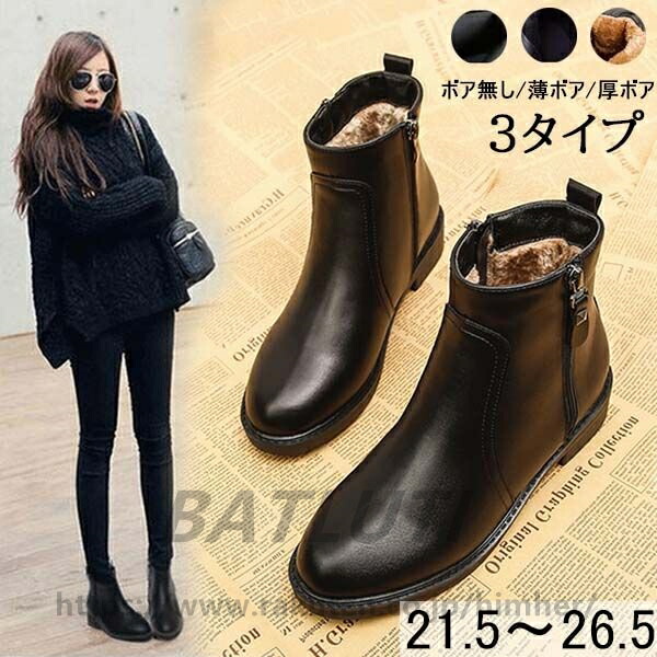 ブーツ ショートブーツ サイドジップ レディース靴 ブーティ 新登場! ブラック/ボア無し ブラック/薄ボア ブラック/厚ボア 21.5 22 22.5 23 23.5 24 24.5 25 25.5 26 26.5