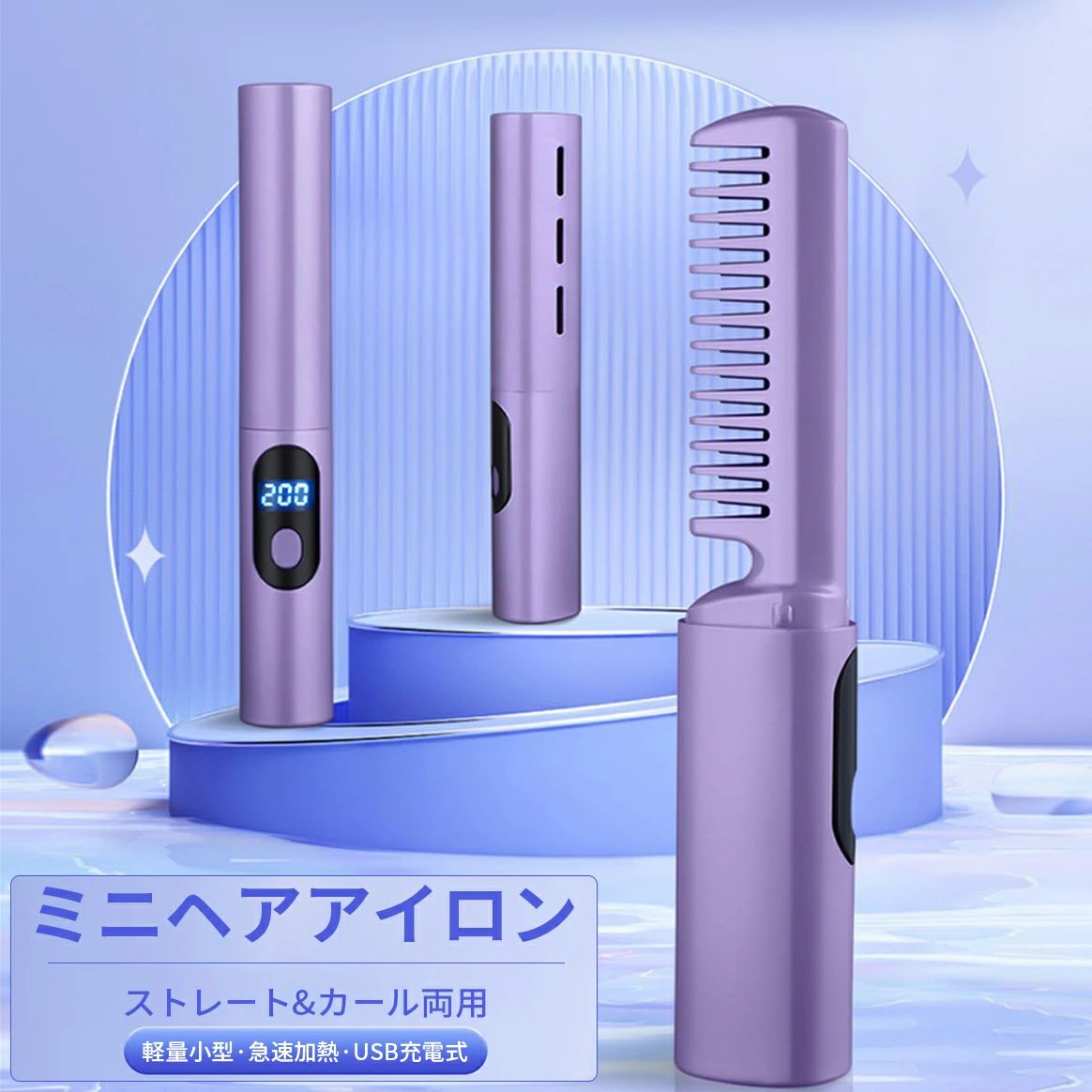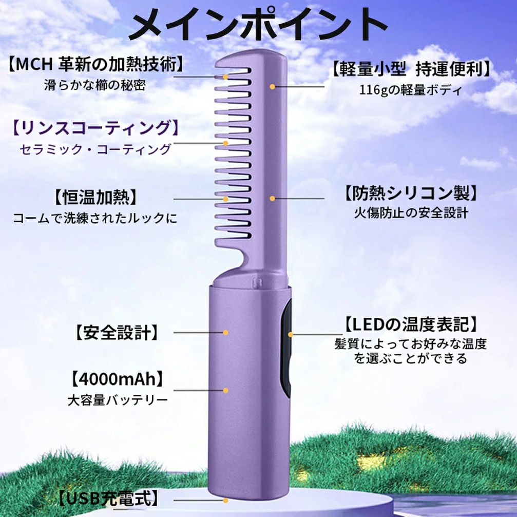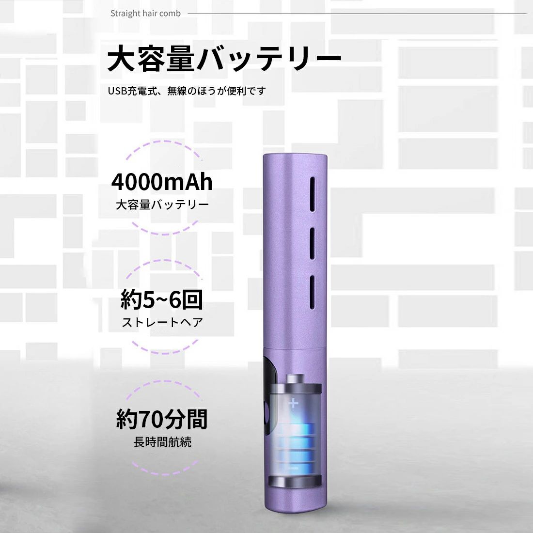 】ヒートブラシ コードレス ブラシヘアアイロン ストレートブラシ カール 両用可能 ポータブル クイックスタイリング USB充電式 静電気防止 火傷防止 4000mAh大容量バッテリー 温度3段階調節