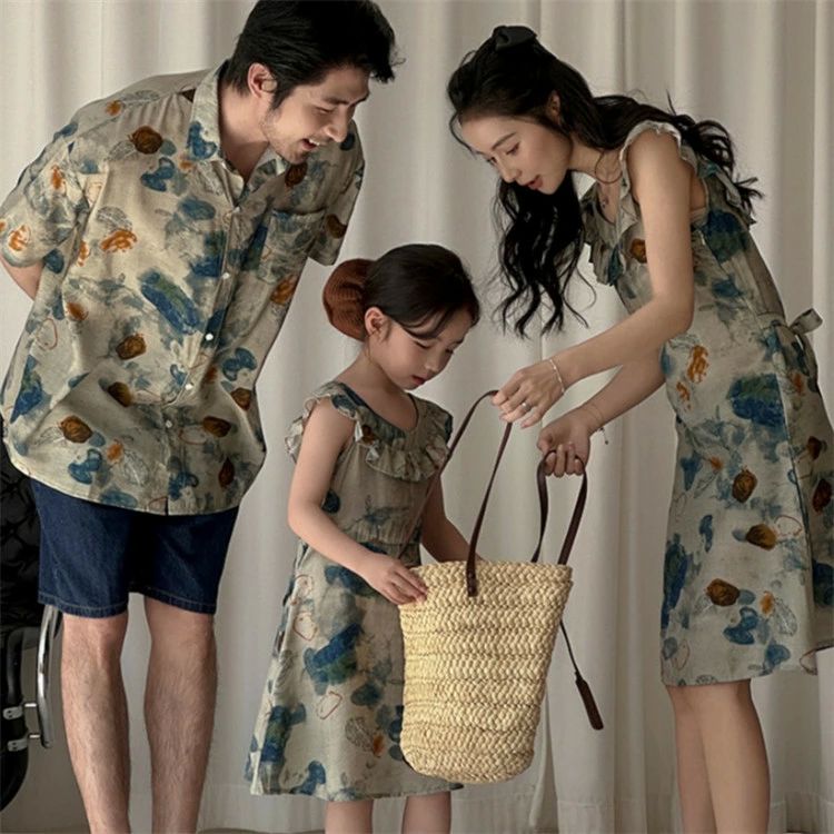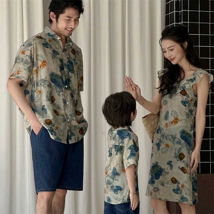 ペアルック アロハシャツ 親子コーデ シャツ ワンピース 80cm 90cm 100cm 110cm 120cm 130cm 140cm 150cm S M L XL 2XL 3XL