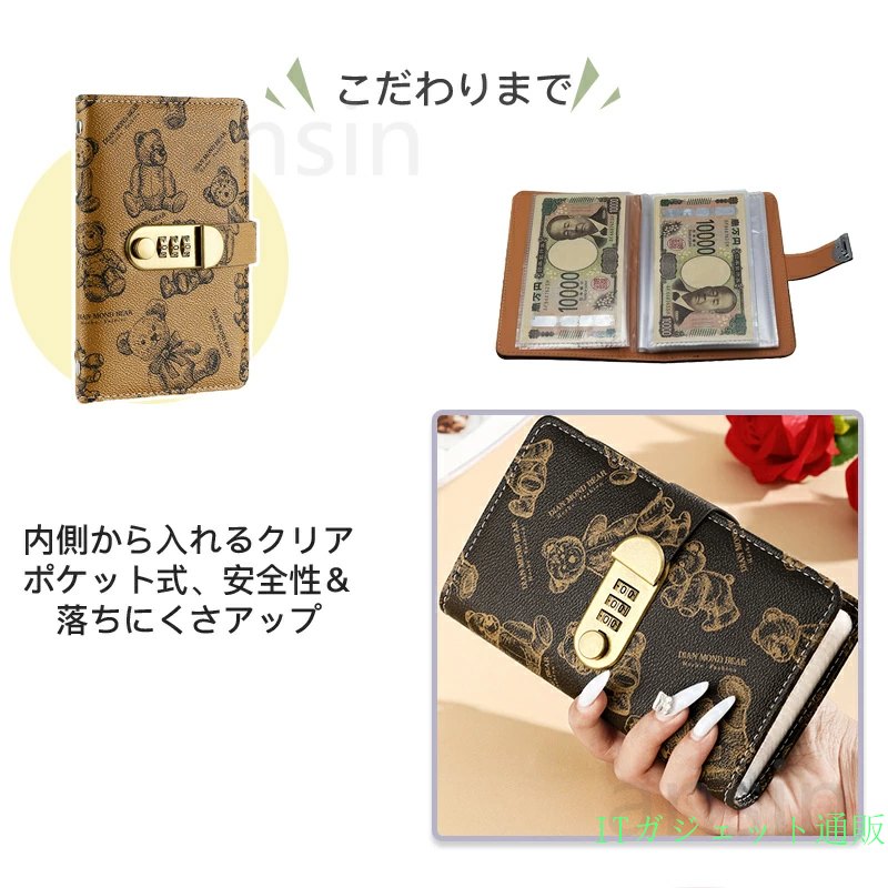 お札 貯金箱 お札封筒貯金 くま柄 ダ ベージュ ブラウン ブラック