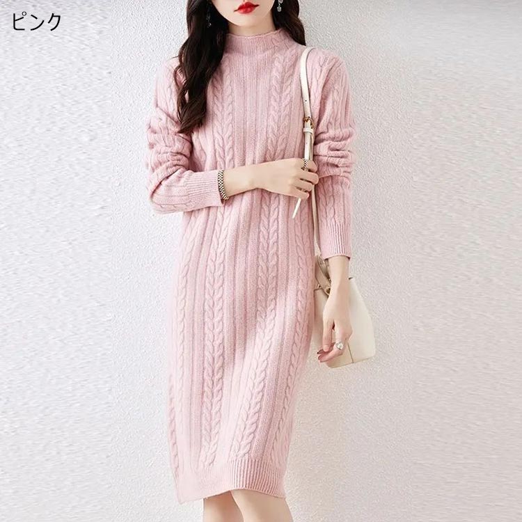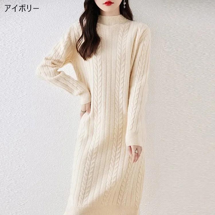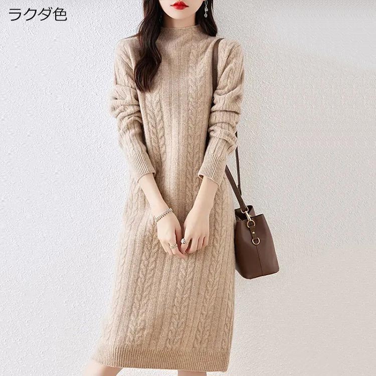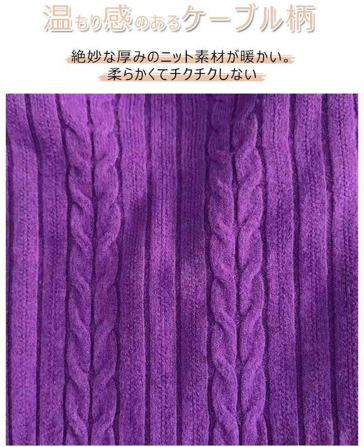 ケーブル ニット ワンピース レディー レディースファッション 続々登場 アイボリー ラクダ色 ブラック ピンク パープル