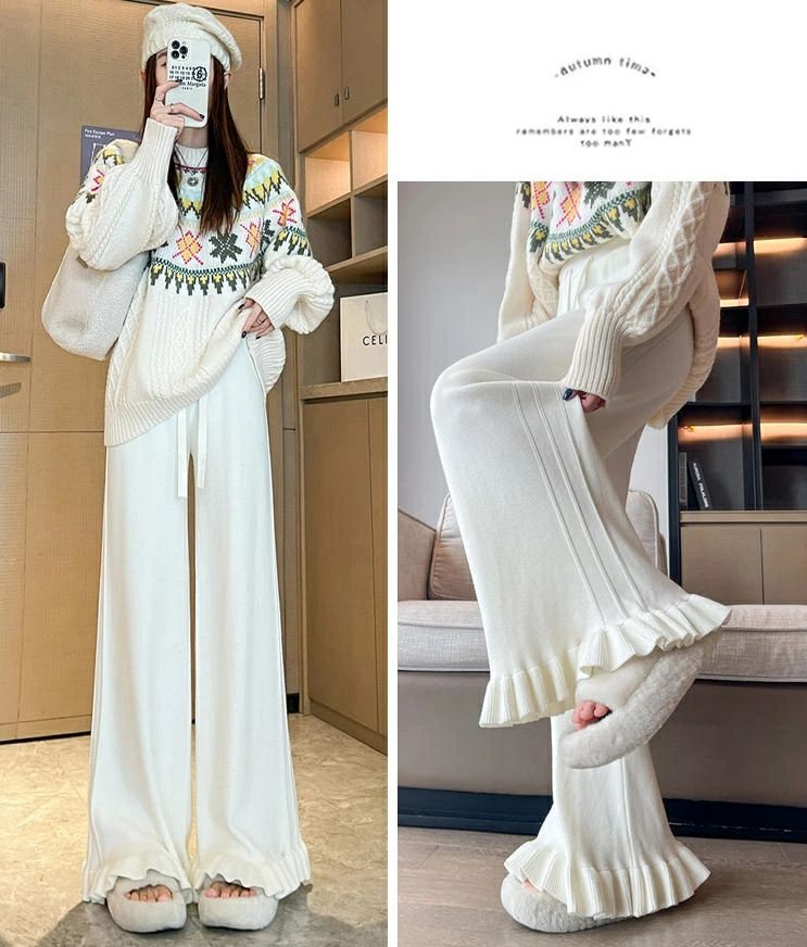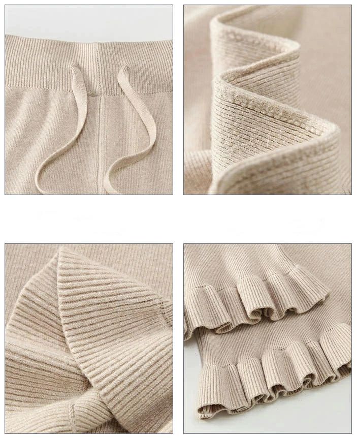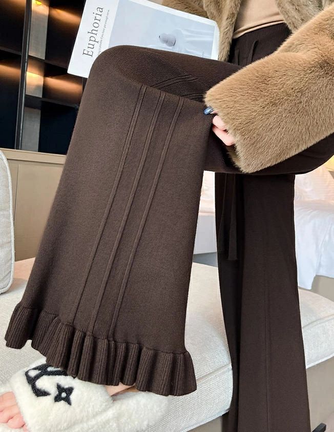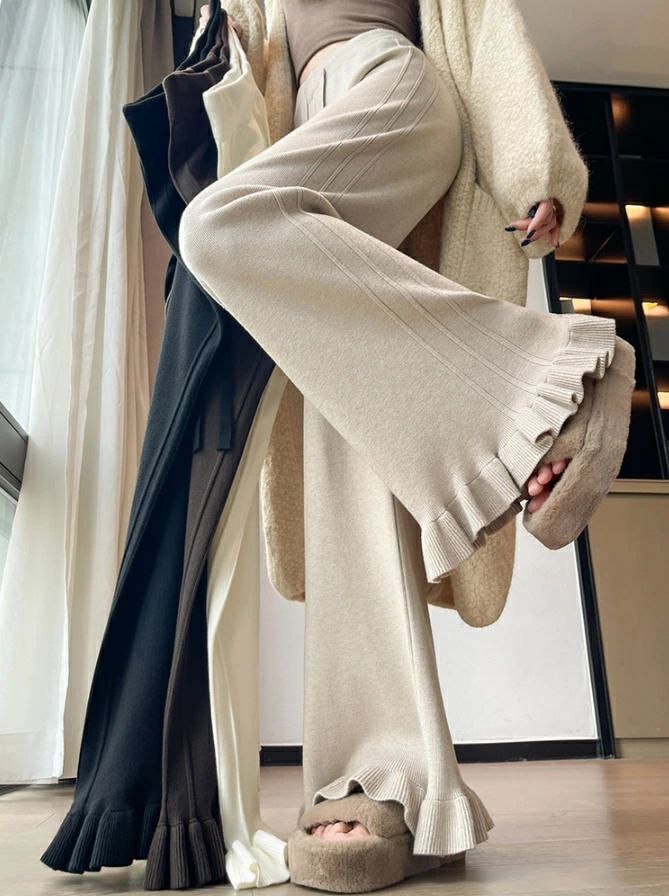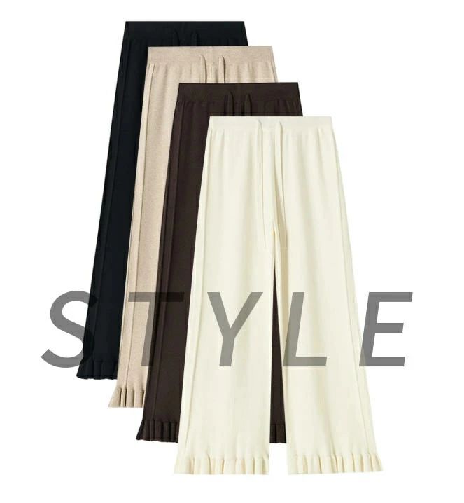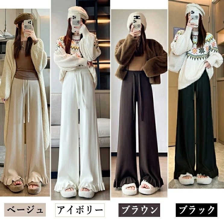 パンツ レディース ニットパンツ 裾フ レディースファッション 超目玉商品 ブラック アイボリー ベージュ ブラウン S M L XL